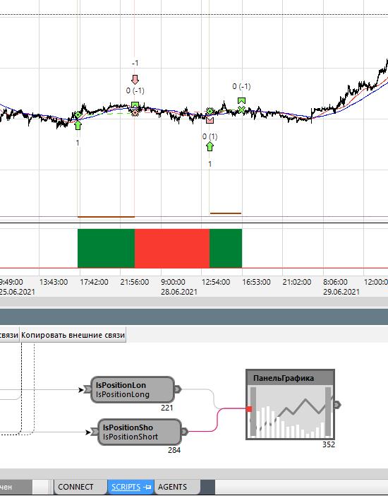 Кубик "IsPositionLong", "IsPositionShort"Кубик на вход получает позицию от блока открытия позиции и показывает тип позиции. Для кубика Кубик