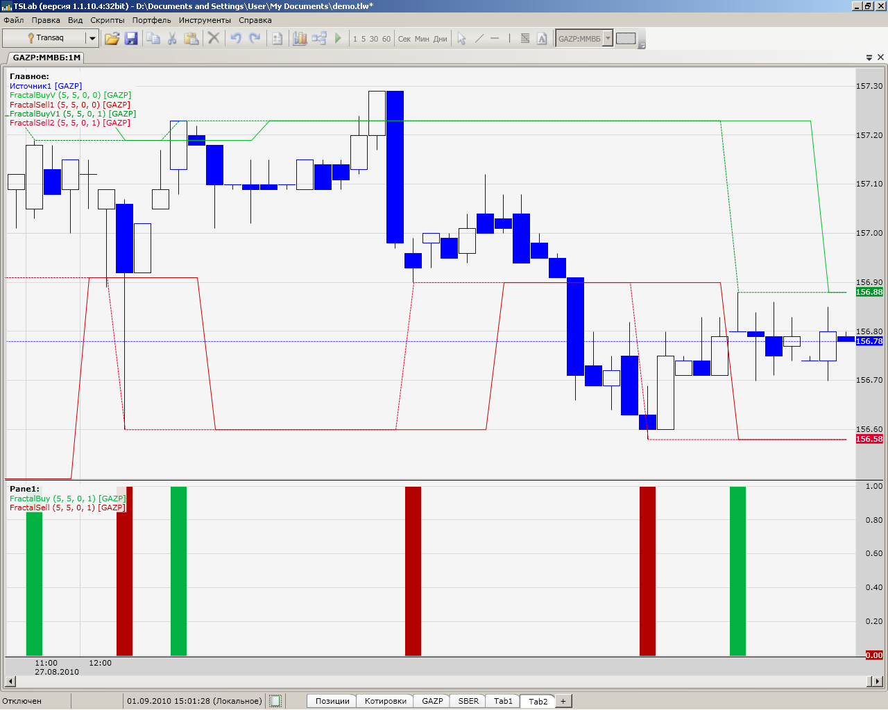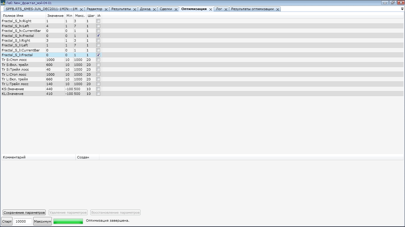 по идее если я правильно понимаю когда появляется пик даже если и местный маленький но зависит от параметра сколько слева и справа бар от пика, но сигнал по моему уразумению должен быть после последнего справа бара т.е. когда полностью сформировался фрактал а что тут происходит я не могу понять. Отвечаю на вопрос в личке: Забудьте о фракталах, это сказка, никто на них ничего и никогда на реале не заработает. Мой фрактал вооще хрень, я его делал 2 года назад, там в ветке даже написано, типа, что я только учусь АПИ и если кто захочет, тот доделает. Я фракталы делать, доделывать не собираюсь, всю их суть, во всем великолепии изобразил СисКреатор, сделать что-то лучшее нереально. Если Вы хотите понять суть фрактала, то лучше самому изобразить фрактал, хотя бы простой, как у меня, после этого Вы поймете, что по своей сути фрактал непригоден для торговли роботами. Так же к таким красивым вещам относятся зигзаги и хейкины. Все эти вещи пригодны только для визуального восприятия цены трейдером. Зиг Заг вообще нужен только для подсчета волны. Более добавить нечего.