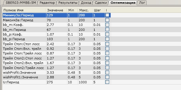 День добрый ! Готов участвовать в проекте. Определим параметры тестирования и в путь... По ФИНАМУ попробовал тестирование(все параметры оптимизируются) бумага ГАЗ 5 мин 01 01 2010 - 30 04 2010 - результат 0,00 ( либо минус))