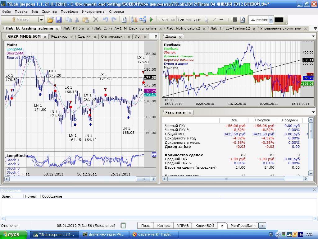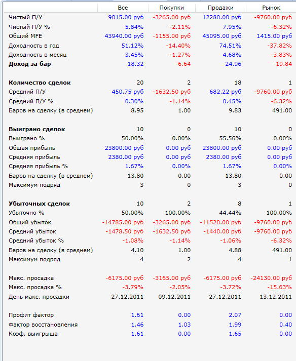 Тогда вырастет макс. просадка, что плохо для системы. Надо подумать. Возможно поправить выходы. [/quote] А вот еще вариант: торговые сигналы генерить на 60 мин., а в сделку входить на минутном тайм-фрейме (сжатие/разжатие) - так и точнее, и прибыльнее. Пример http://s018.radikal.ru/i520/1201/fe/941b05a8305f.jpg
