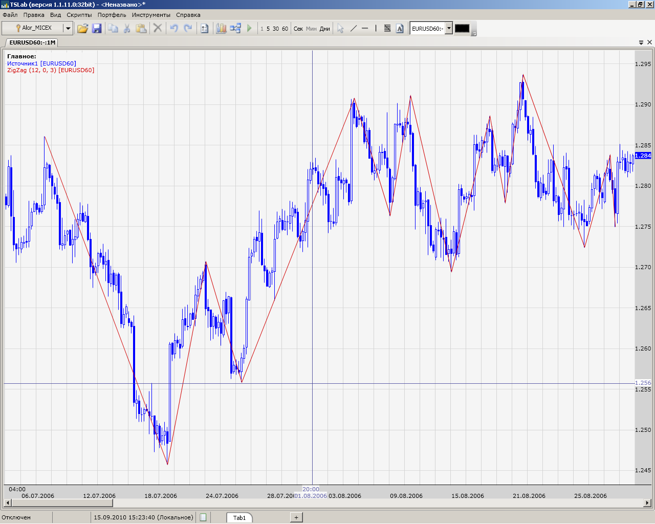 • ExtBackstepПримечание. Перевод с MQL. Ссылка на исходный код http://codebase.mql4.com/ru/238 . Результат сверен с результатом в MT4 (см. картинки). В оригинале ExtDeviation умножается на параметр Point (кто работал с MT, в курсе), соответственно, необходимо будет подобрать этот параметр самостоятельно. Для приведенной картинки параметр = 0.05PS. Функция соединения по точкам появилась очень кстати. Спасибо