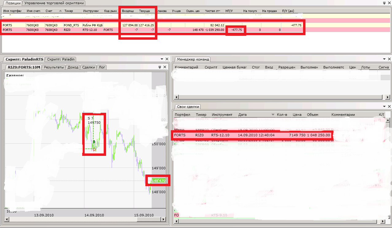 Вчера встал в шорт по фьючу РТС по цене 149750, депо был на тот момент 128ххх (точно не помню последние цифры). До обеда был в плюсе тоже, текущую цифру видел 132ххх. А вот что стало после 14 часов:
