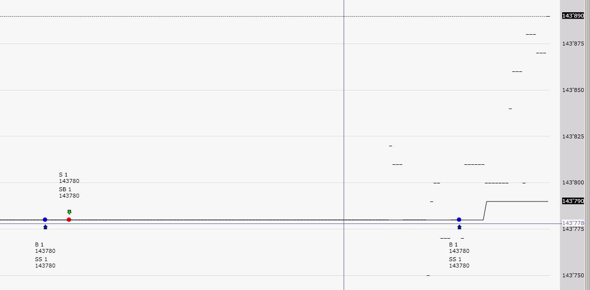 у меня сейчас прошла заявка(исполнилась) 1 лот в 13-54 по цене 143710 , это был минимум на минутке. Пред мной в стакане выставлялись и исполнялись сделки по 143720 143730. А график отрисовался почему-то как будто не было сделок, одним тиком по цене 143710 и 0 объемом. Как минимум 1 штуку продали мне ...