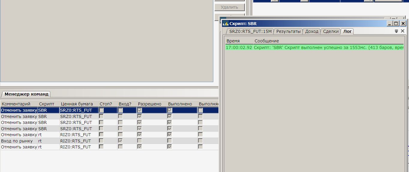 Запустил другой скрипт, 15 мин. тоже самое, сигнал есть, в менеджере команд кликаешь мышью выполнить, а сделка не происходит. в чем может быть дело?