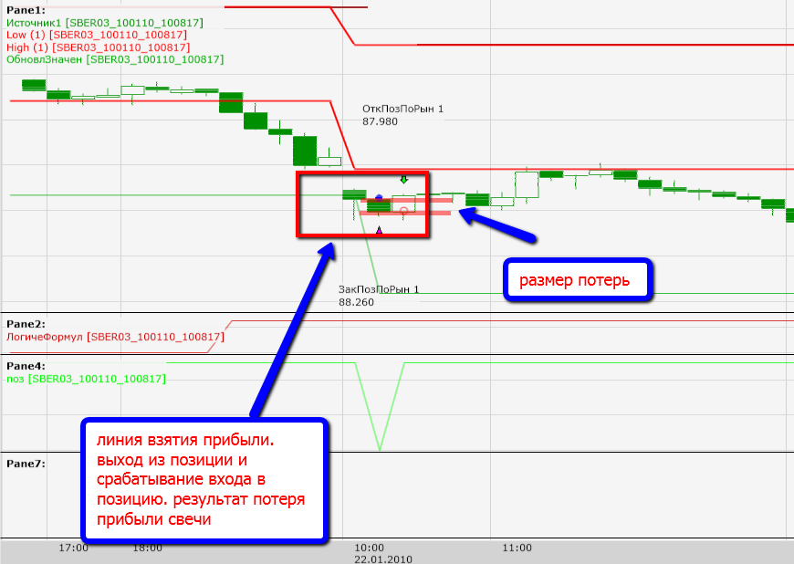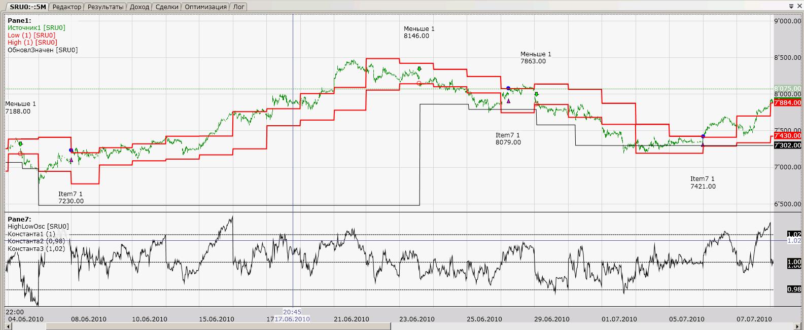 А вот когда перевожу на рабочий скрипт начинается что-то непонятное: почему то блок Обновляемое значение перестает реагировать на подключенное к нему условие (запись в блок при условии что значение в нем не блоше нуля). В результате вместо жесткого первоначального стопа получается плавающий вслед за АТR стоп, т.е. запись в блок Обновляемого значения ведется постоянно (изменился чуть АТR и на тебе новое значение стопа).