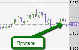 Пропадала свечка вроде в 13-30 или 13-20( в ней были не все данные )