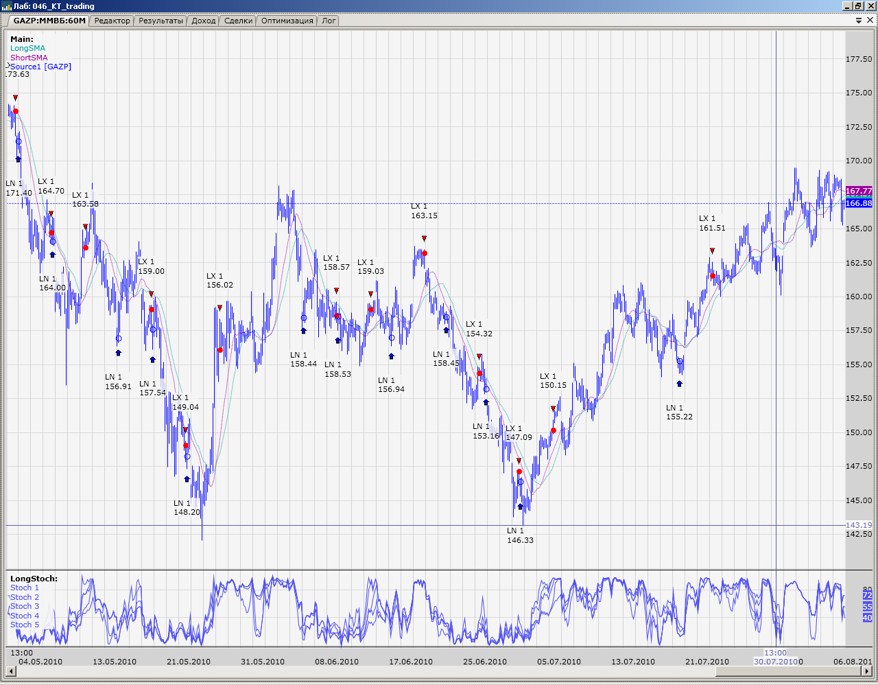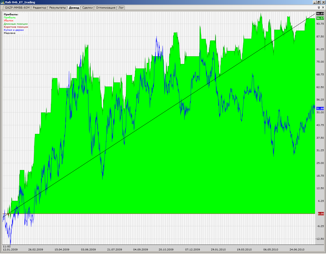 Для реализации стратегии "KT Trading System" за основу взят скрипт на сайте Wealth-Lab.