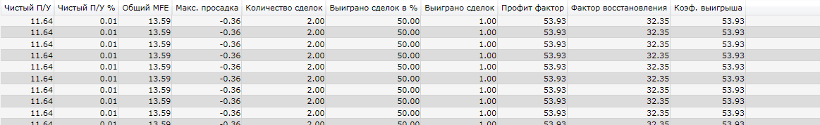 Нет, выбрано три параметра, общее число вариантов - порядка ста тысяч. Верхняя часть таблицы результатов на картинке. Если один из параметров отключить, то в результатах обычно появляются две колонки, соответствующие неотключенным параметрам (картинка в изначальном посте).