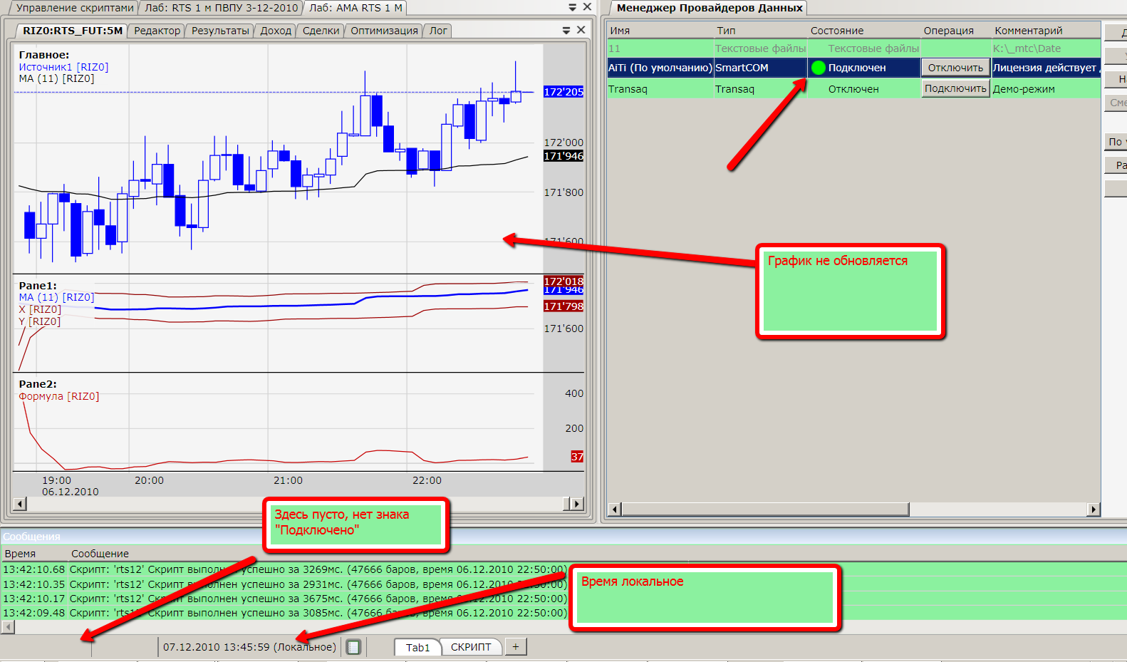Попробуйте перейти на последную сборку 1.1.15.32 и удалите файл Orders.xml в каталоге C:\Documents and Settings\YOUR_ACCOUNT\Local Settings\Application Data\TSLab\TSLab\AiTiCacheData, он запорчен.