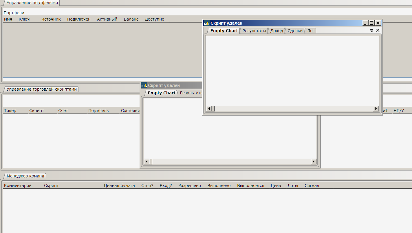 При перезагрузке конфигурация не сохраняется, портфели и скрпиты удаляются.