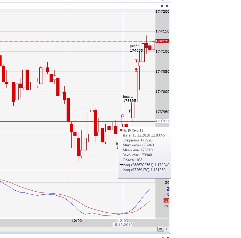 Открытие сделки происходит по пересечению macd, в 12,03,45 он совершает две сделки: одну реальную по цене 173940 и еще одну по цене 181350. Вобщем исполняетя только одна а закрывает он обе сделки, на выходе получается -1 контракт. В лаборатории все нормально. Что я не так сделал?