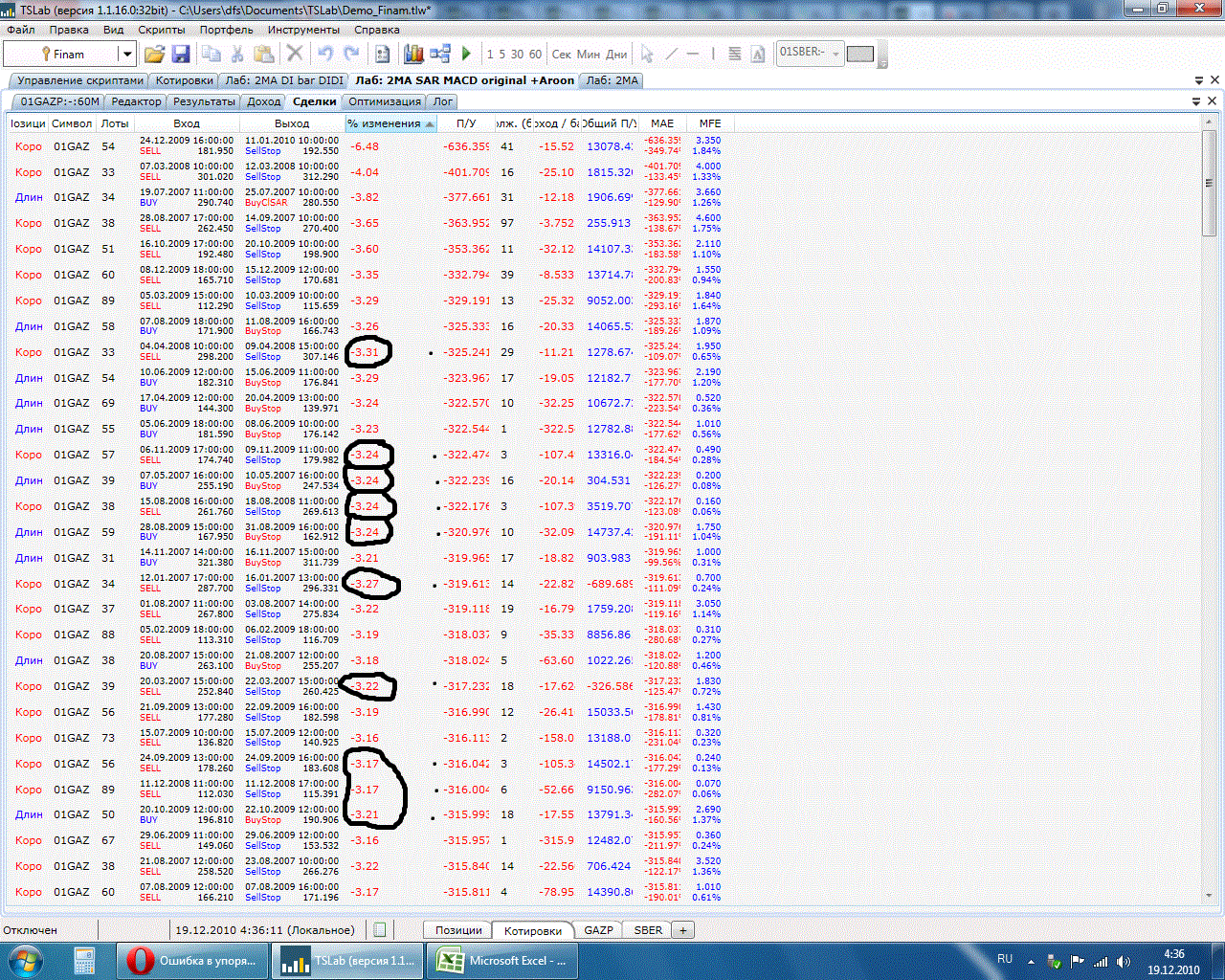 в визуальном редакторе в закладке "Сделки"неправильно упорядочивается столбец "% изменения" - программа делает это(насколько я понял) исходя из соседнего столбца "П/У", в итоге проценты изменения выстраиваются не по порядку от большего к меньшему(или наоборот).