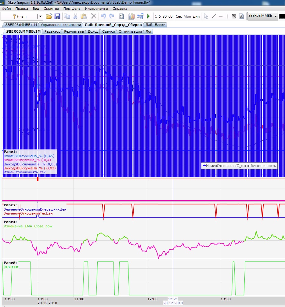 А просто доступ купить в Финаме не получается? Или ключевое слово - бесплатно? В реале я торгую в Уралсибе. И до тех пор, пока я не пойму, что эти "кубики со стрелочками" могут приносить мне доход, я даже не задумаюсь о смене брокера. А за предоставленный демо-доступ с Инама достаточно, что я рекламирую его, озвучивая его имя. Однако, я совершенно не понимаю ограничение на такой доступ. Тем более, что за месяц для непрограммера, без достаточной справочной информации, самостоятельно, да на исходе пятого десятка жизни, ТСлаб не освоить. Не говоря о том, что разработать прибыльную торговую систему, и заточить для работы в реале. А временнОе ограничение лишь добавило препятствий на пути к освоению ТСЛаба, являвшейся единственной нитью, которая могла связать меня с Инамом, чьи условия торговли не лучше моего брокера. Так что, пока поиграюсь в кубики бесплатно. Либо заброшу эту игрушку. А посему, повторюсь с вопросом: где могу получить демо-доступ бесплатно? Мысль забросить эту игрушку возникает тогда, когда по сути не знаешь к кому обратиться с вопросом. Даже сейчас, насовав в свой скрипт кубиков, я не знаю у кого бы мог спросить например: почему выскакивают только шортовые сделки? Т.е., я не нахожу возможности обучиться. Я, - тот кто уже увидел вашу рекламу (ТСЛаба), усвоил ее, загрузив себе программу, подключился к провайдеру данных, работающему с вами, и ... на этом этапе обессиленно опускающем руки. 2 NektodronСпасибо, помогло. С уважением.