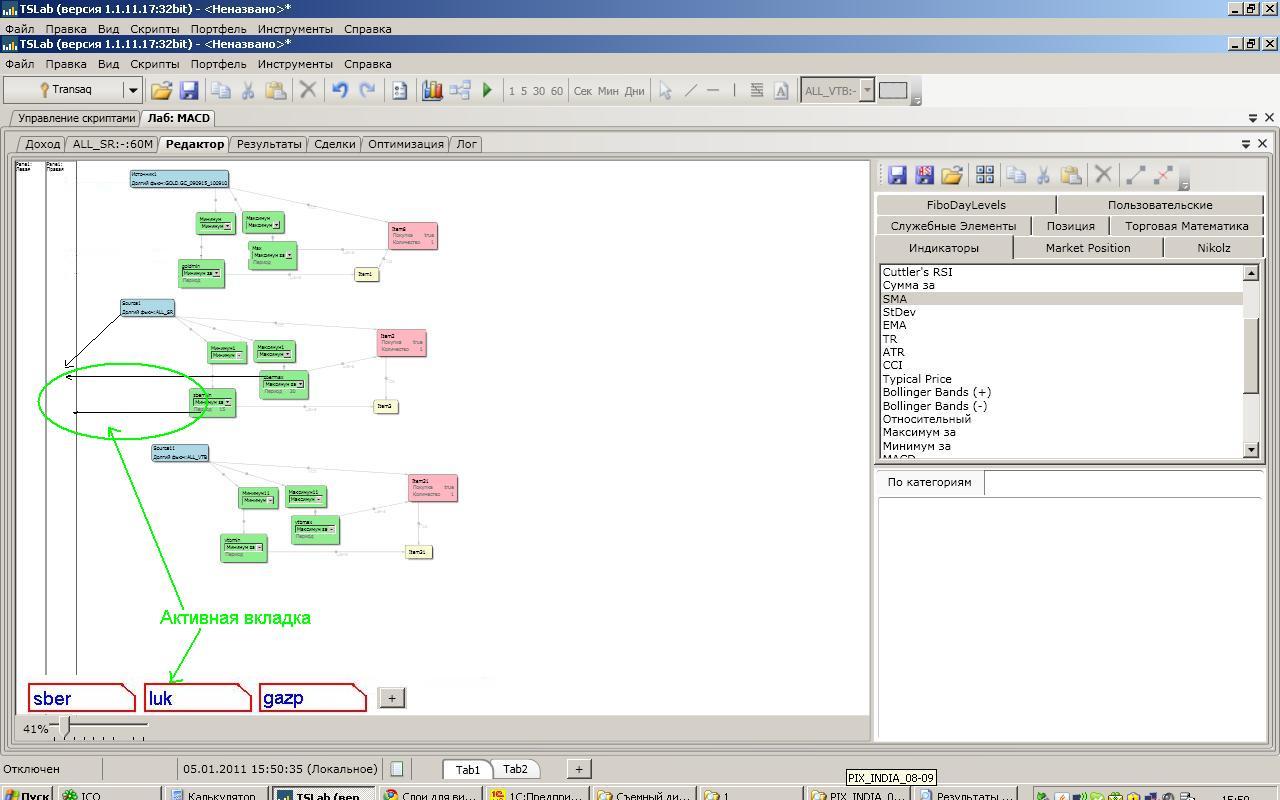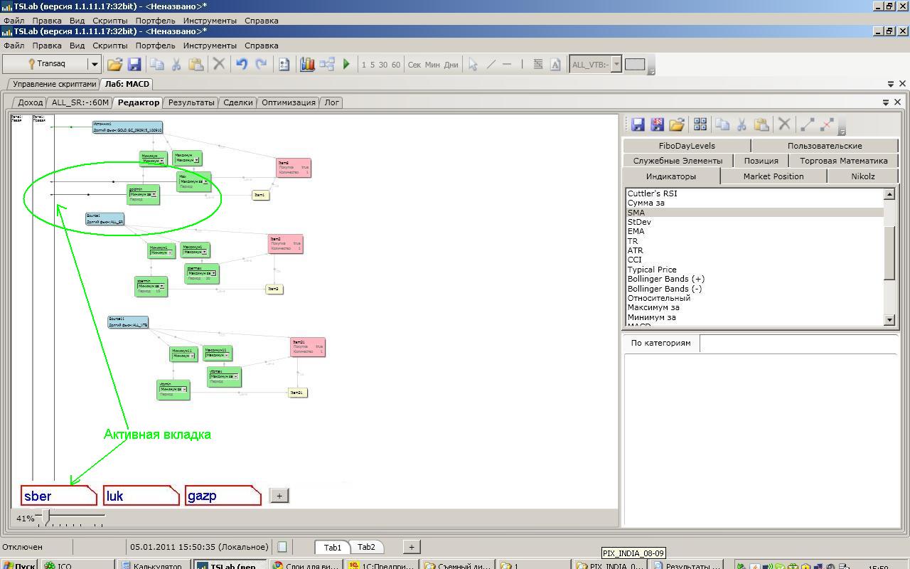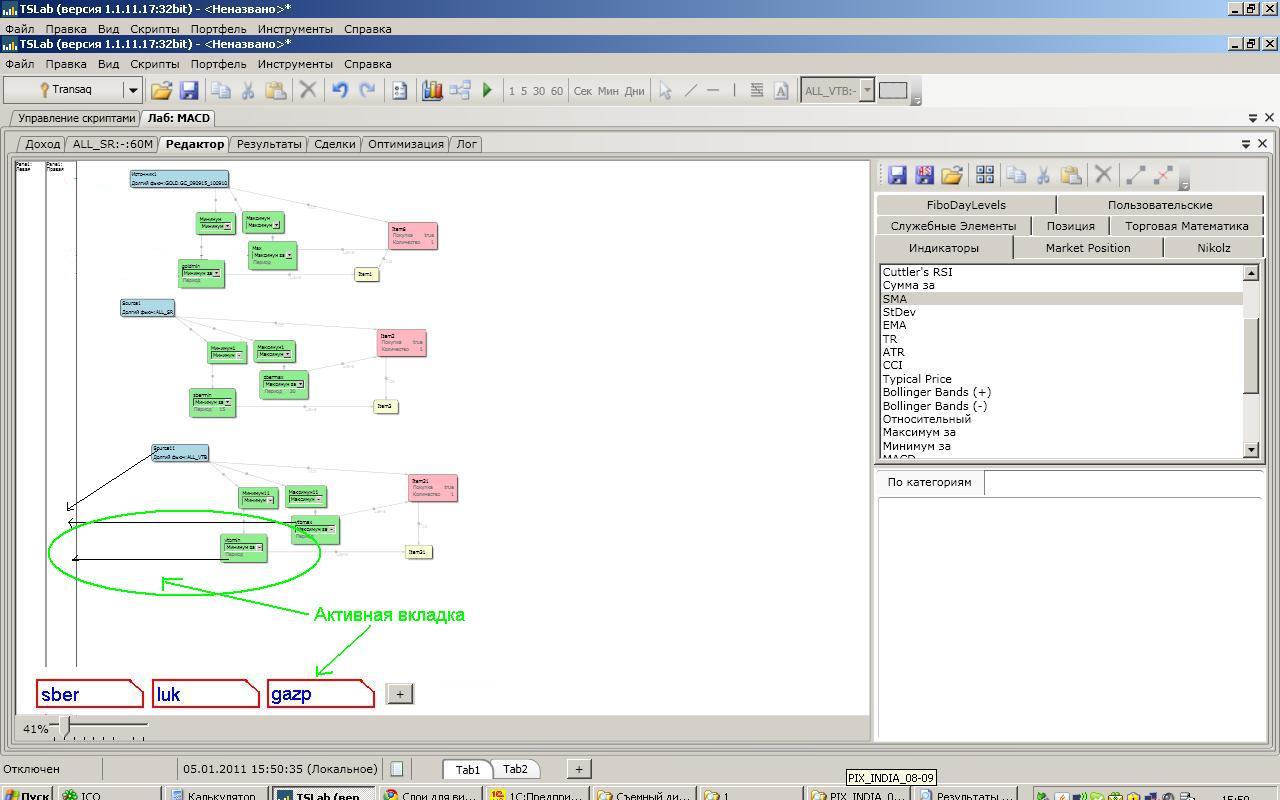 график то на каждой закладке сделать можно, но вот результатов работы скрипта ты там на увидишь! прозрачность это вообще не выход. задача стоит не простая - отслеживать работу 10, а на сегодняшний день и 30 графиков + работа скрипта по ним. а, как вы хотели работать на серьезном портфеле хотя бы в несколько миллионов? на паре бумаг? рискованный ход. а городить 30 скриптов, тоже не выход. нужно отслеживать диаграмму доходности и таблицу результатов для всего портфеля, а не для каждого скрипта в отдельности. в идеале должна быть возможно просматривать диаграмму доходности и таблицу результатов, как для одной конкретной бумаги, так и для портфеля в целом.