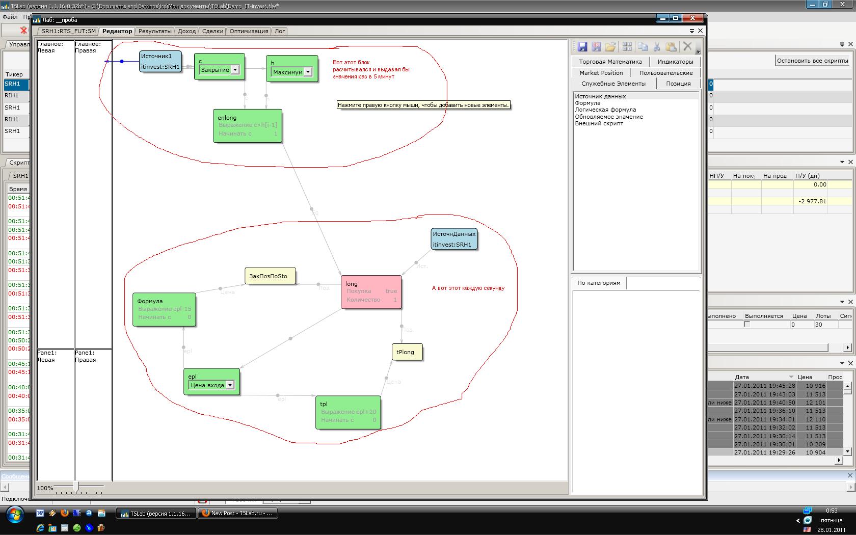 После долгих мучений и тщетных попыток сделать так, что-бы при торговле, выставленные стопы срабатывали моментально пришел к выводу, что это возможно только при использовании блоков сжатие, разжатие, что сильно усложняет блок-схему алгоритма и губит на корню последующую визуализацию при торговле.