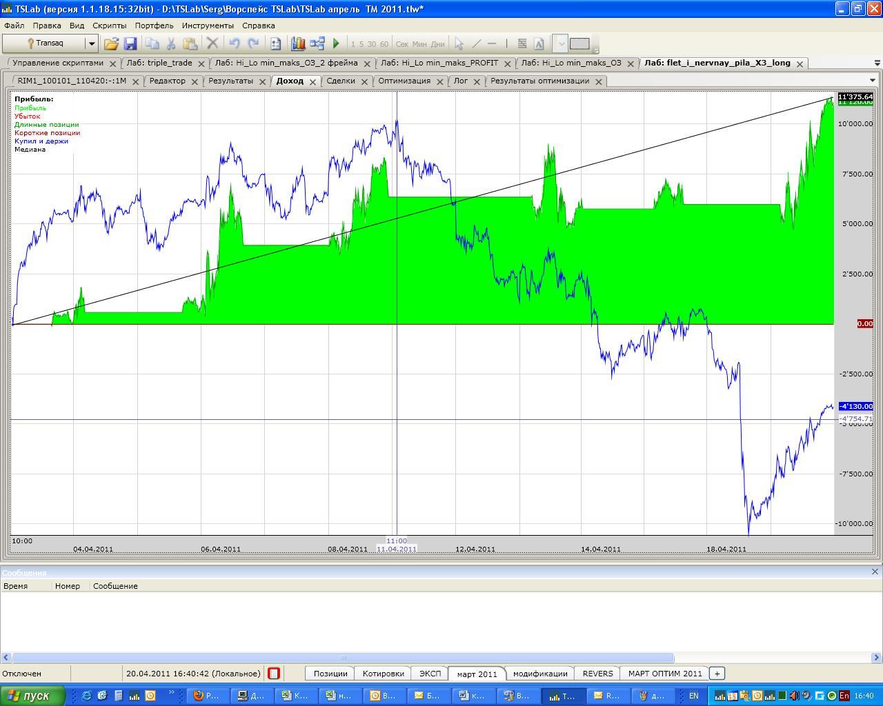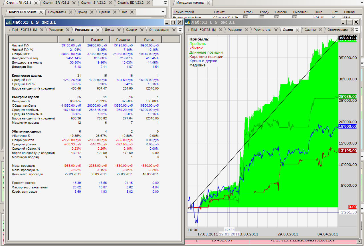 Посмотреть на разные комбинации торговли для опыта. ОК, сделаю на днях. Кстати сейчас скрипты (те что для акций без коротких позиций) лосят. И будут продолжать этим заниматься в даунтренде. На флэте или росте компенсируют "потерьки". Да, было бы здорово ознакомиться с этими скриптами. Ознакомление только в виде контейнера. можно будет поставить в лабу и ознакомляться или в торги, но тогда ознакомление будет за счёт ваших средств