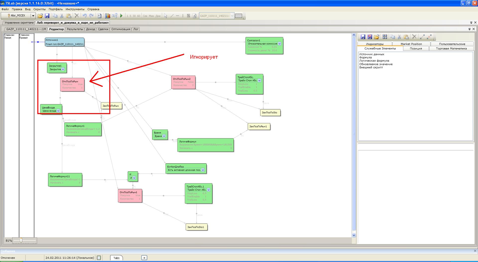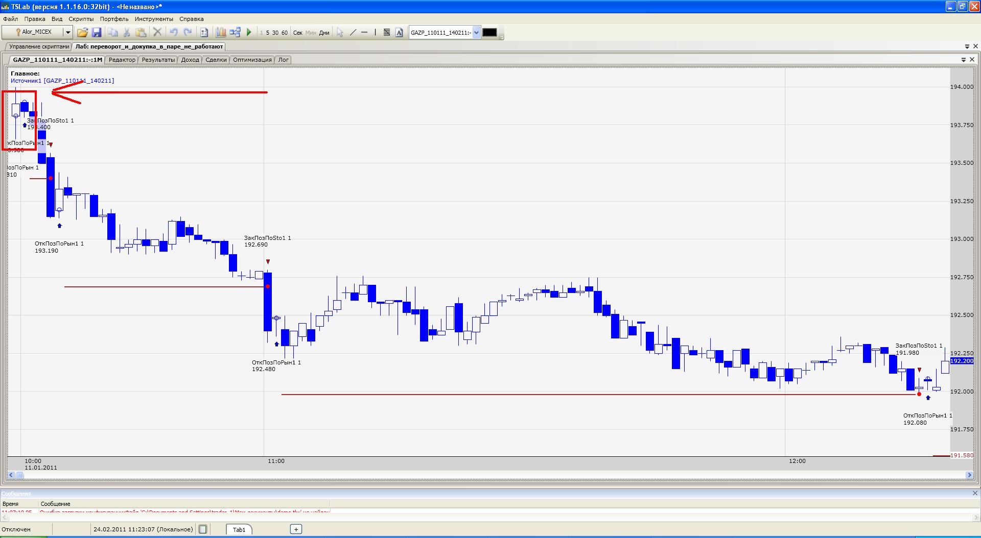 Подскажите пожалуйста. Исполнение прилагаемого скрипта предполагает следующее: 1.Вход в лонг. 2.При изменении цены в сторону открытой позиции на 1р. происходит докупка еще одной акции. 3.При изменении цены от цены входа на -1,2р. происходит закрытие открытой лонг позиции и открытие шорт позиции. Закрытие позы из п.2 и 3 по АбсТрейлСтопу. В редакторе с логической точки зрения вроде все верно составил, а скрипт не составляется, пишет ошибку : error CS1501: Ни одна из перегрузок метода 'Execute' не принимает '1' аргумент(ов). Что_яделаю_нитак?!