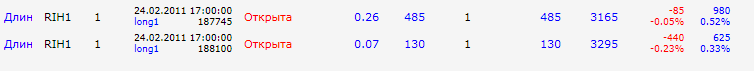 Сегодня в 18-05 (даже не в 18-00 как должно быть) скрипт снова открыл позицию 2 раза с разницей между заявками 14 секунд. После чего программа вообще закрылась. Кстати, за сегодняшний день это не первый случай вылета программы. И как на зло каждый раз это происходит тогда, когда я собираюсь куда-нибудь уезжать. Не знаю что там с транзаковским коннектором, но такая автоматическая торговля, мягко говоря, не внушает доверия. Подскажите у какого брокера открыть счет, чтобы таких проблем не было. Мне в принципе все равно кому из них платить комиссию. такое было у меня на смарткоме из за потери того связи с сервером. На транзаке ничего подобного не было