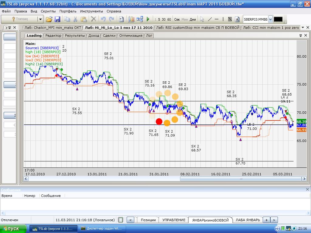 День добрый ! Режим лаборатории, подключение к реальным торгам.В управлении -15 800 руб.первая сделка - разница в цене ( убыток) - 0,43руб. на акцию или ( из кол-во бумаг в лотах ( 100шт*2) -86 руб.А по результатам работы скрипта - весь депозит , точнее 79% - слилось. версия 1.1.17.68. Пробую оптимизировать - при загрузке текстового файла - полный вис....... И такое идет с 1.1.17 сборки или это только у меня одного? http://www.tslab.ru/ubb/ubbthreads.php?ubb=showflat&Number=22204&page=2
