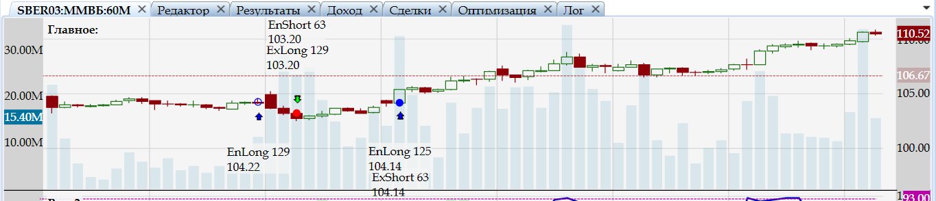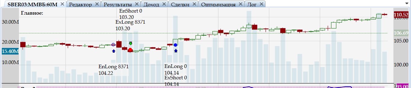 Да именно так, но только количество первой сделки рассчитывается неверно. В скрипте в начальном депозите указано 67633 руб. применяю коэф. 2 в блоке покупке, а также 98% от портфеля, итого получается при цене 104,22 примерно 129 лотов, а не 8371 (поэтому и денег не хватает для следующей покупки). И притом ничего не меняя, при повторном ОК все восстанавливается, количество первой сделки = 129 лотов (на скринах выше это видно).