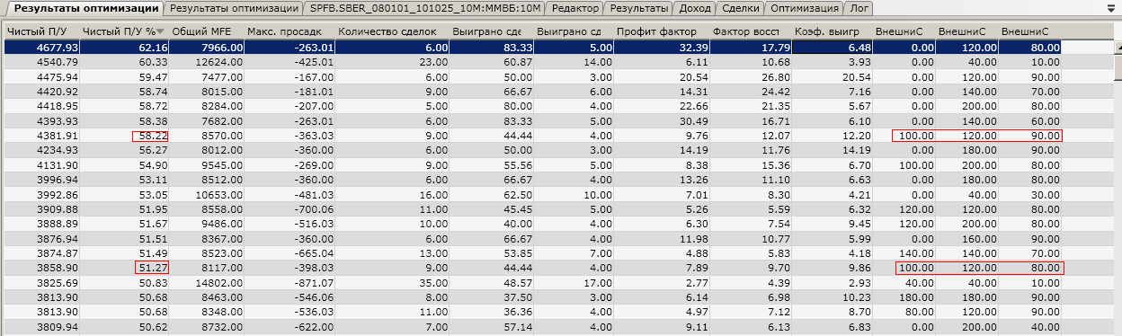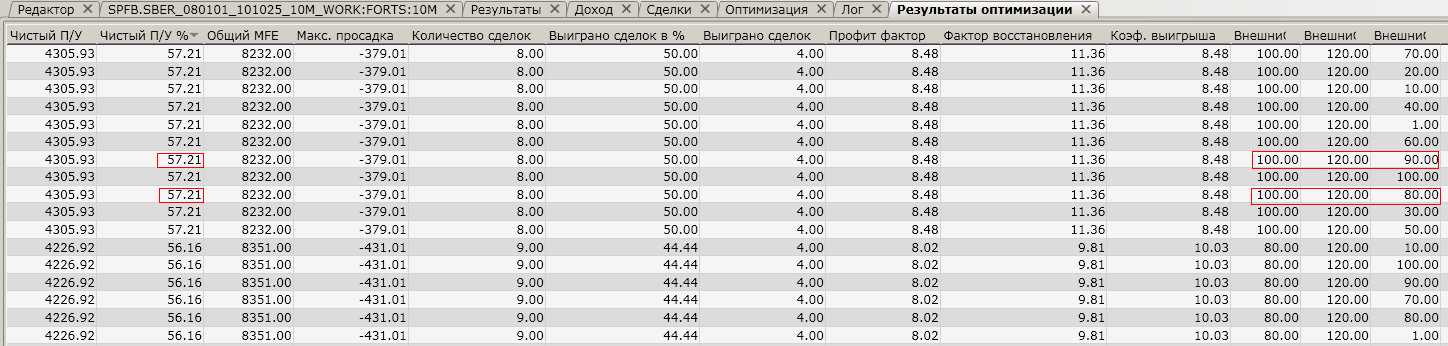 А в Результатах на каждый оптимизируемый параметр свой П/У, что верно по сделкам и графику.