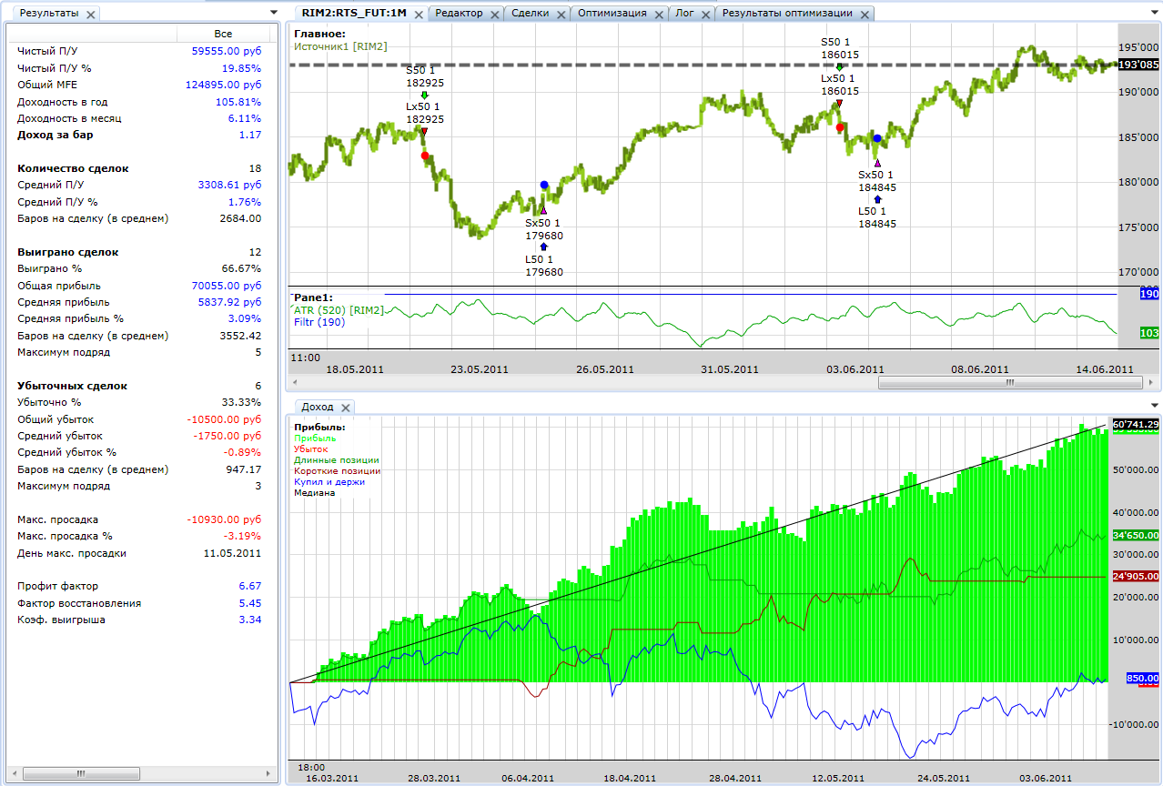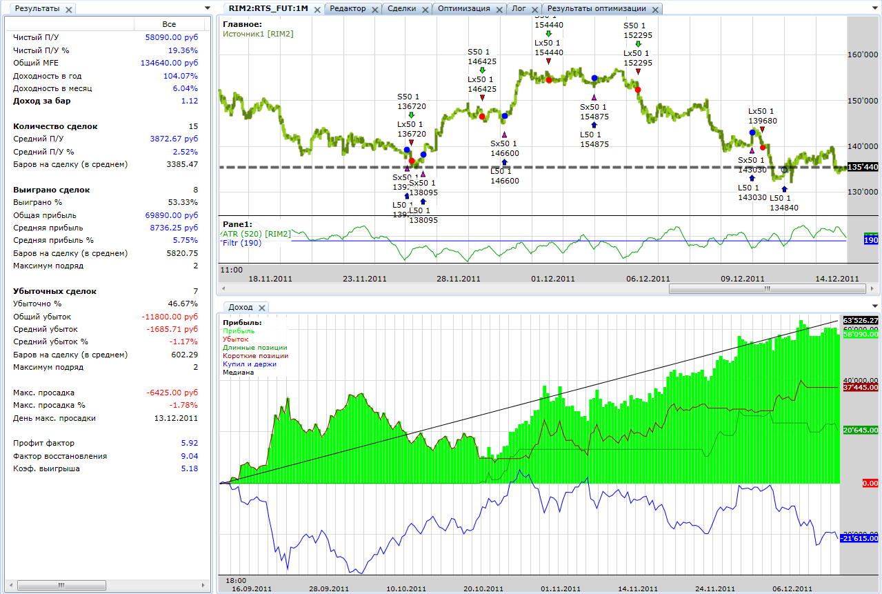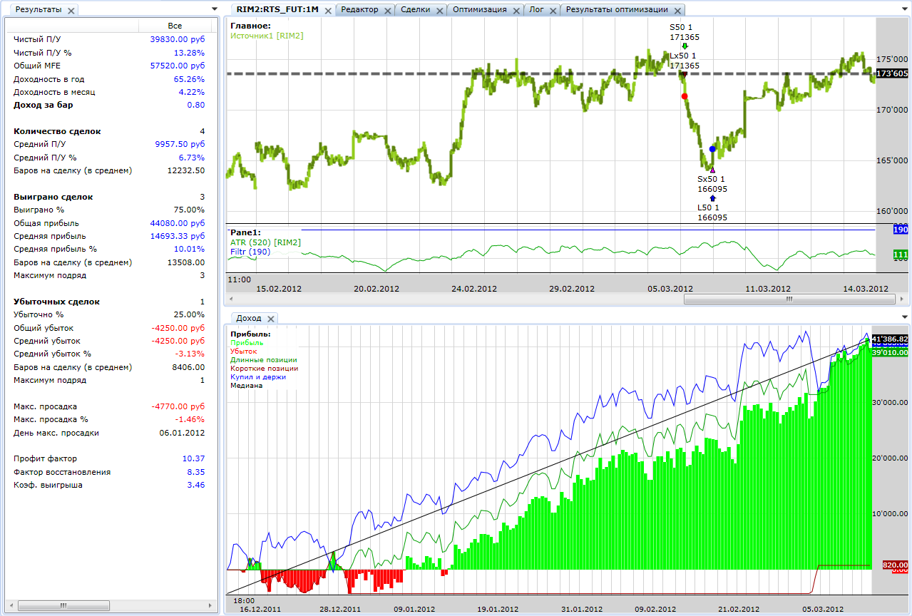 Ну что же, если скрипты будут продолжать давать стабильный результат, конечно готов платить аренду Если они не будут давать результат, то и говорить особо не о чём. Думаю логично, если оплата по результатам работы скрипта)) нет результата нет и оплаты. З.Ы. Идея не дебютная, ей больше года http://www.tslab.ru/ubb/ubbthreads.php?ubb=showflat&Number=26818#Post26818 , но только последние пол года она обрела текущий вид. З.Ы.Ы. Если по чесноку, то, несмотря на +20 000 пп в Ri SD v4 этот плюс за счёт первых нескольких сделок. А фактически на таком рынке скрипт топчется на месте. Что и не удивительно для среднесрочного трендового скрипта. И как раз приятным его свойством считаю, что он держится, а не льёт на этом г-не в смысле на срочном рынке МФЦ  Если и дальше будет "держать удар" можно будет считать его стабильным. Но, посмотрим.