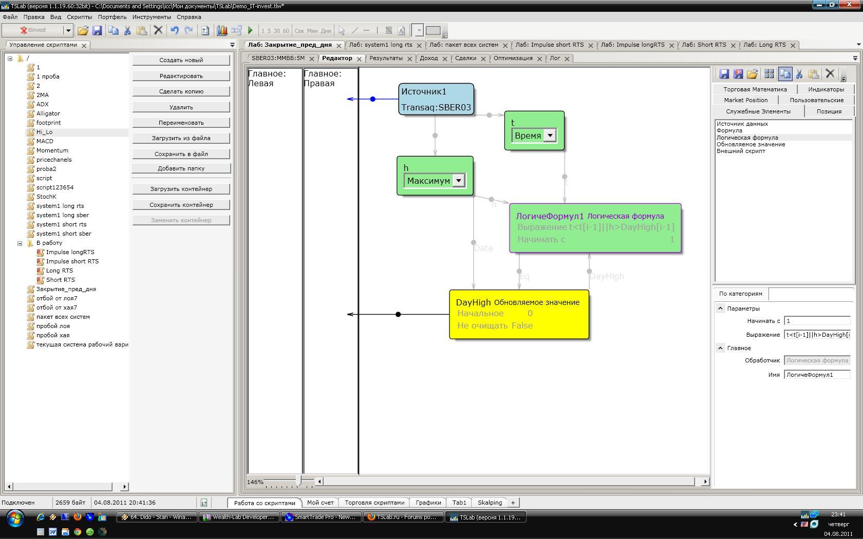 Вы же просили максимум предыдущего дня... Кстати, для этого есть еще индикатор из папки Nicolz - SessionHigh. В вашем же примере обновляемое значение не хранит (пока в данной версии) историю. А условие t<t[i-1] будет выполняться всегда на открытии сессии, так что оставьте только его, и уберите лишний вход к лог.формуле Спасибо огромное,эти индикаторы... прям то что нужно...
