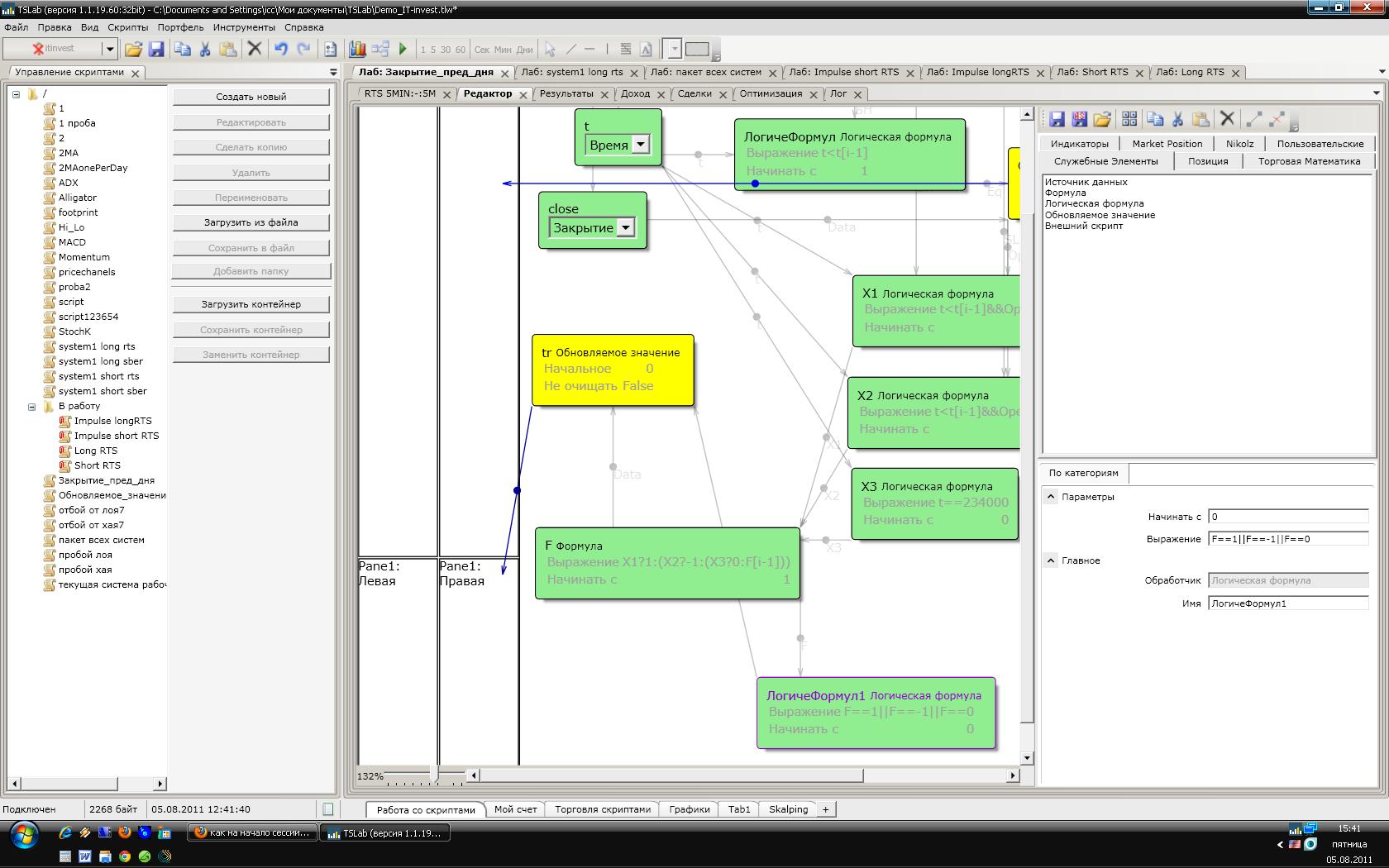 Может на картинку взгляните, может я совсем не то делаю... Смысл такой: в конце сессии нужно приравнять значение нулю, затем на первой свече новой сессии, проверить два условия и смотря какое из них выполнится приравнять 1 или -1 (эти значения должны сохраняться до 23.40 ), если оба не выполнятся то значение всю новую сессию должно оставаться равное нулю...