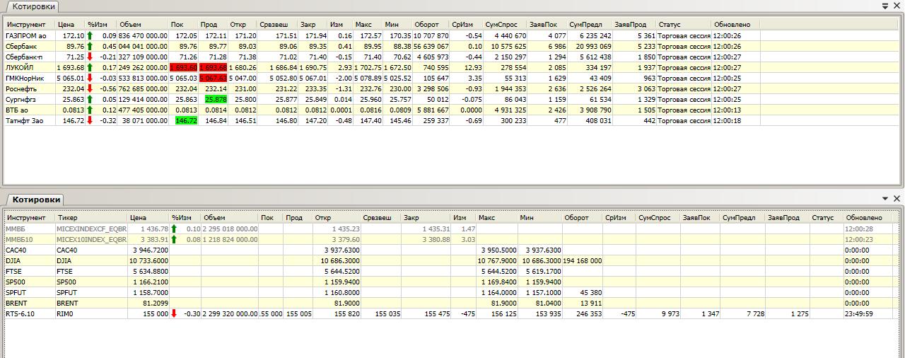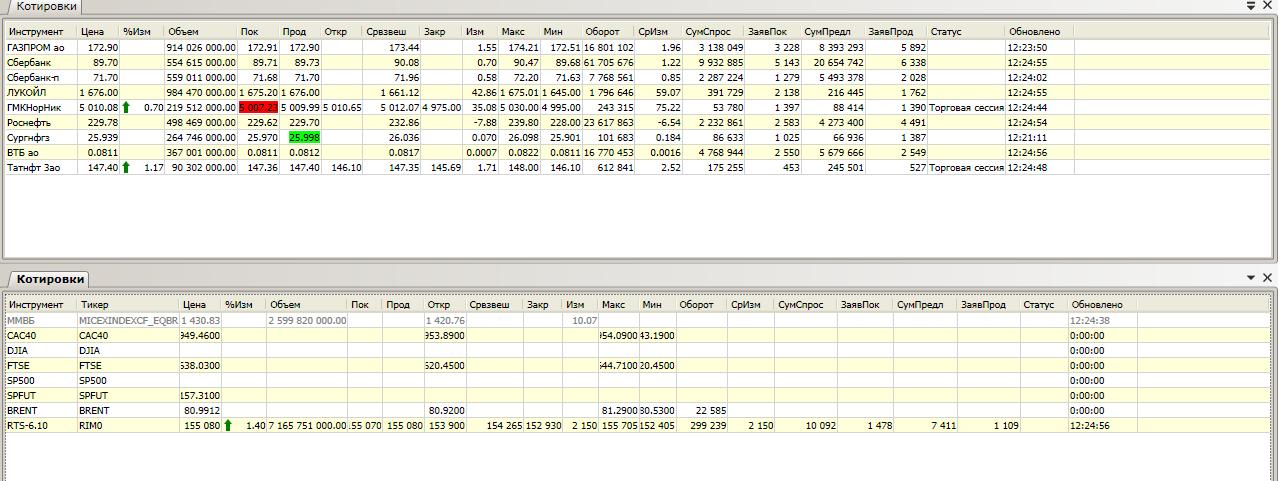 Часть данных в таблице котировок не заполняется. Рестарт приложения приводит к тому, что состав незаполненных данных изменяется (произвольно от рестарта к рестарту). Скриншоты двух рестартов прикладываю.