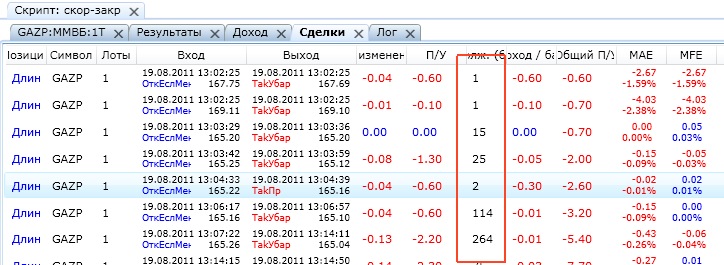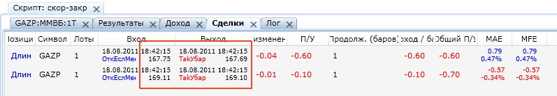 и при этом я заметил еще и прыгает кол-во баров на сделку т.е. постоянно пересчитывается на всех уже выполненных и не выполненных сделках - на закладке скрипта "сделки"