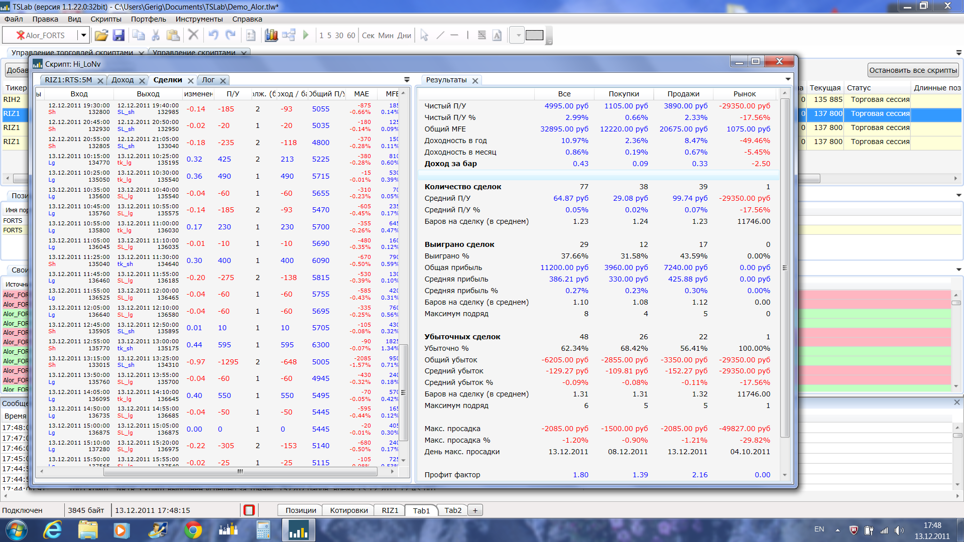 Скрипт я постоянно модифицирую по результатам реальных торгов здесь за два дня торгов.