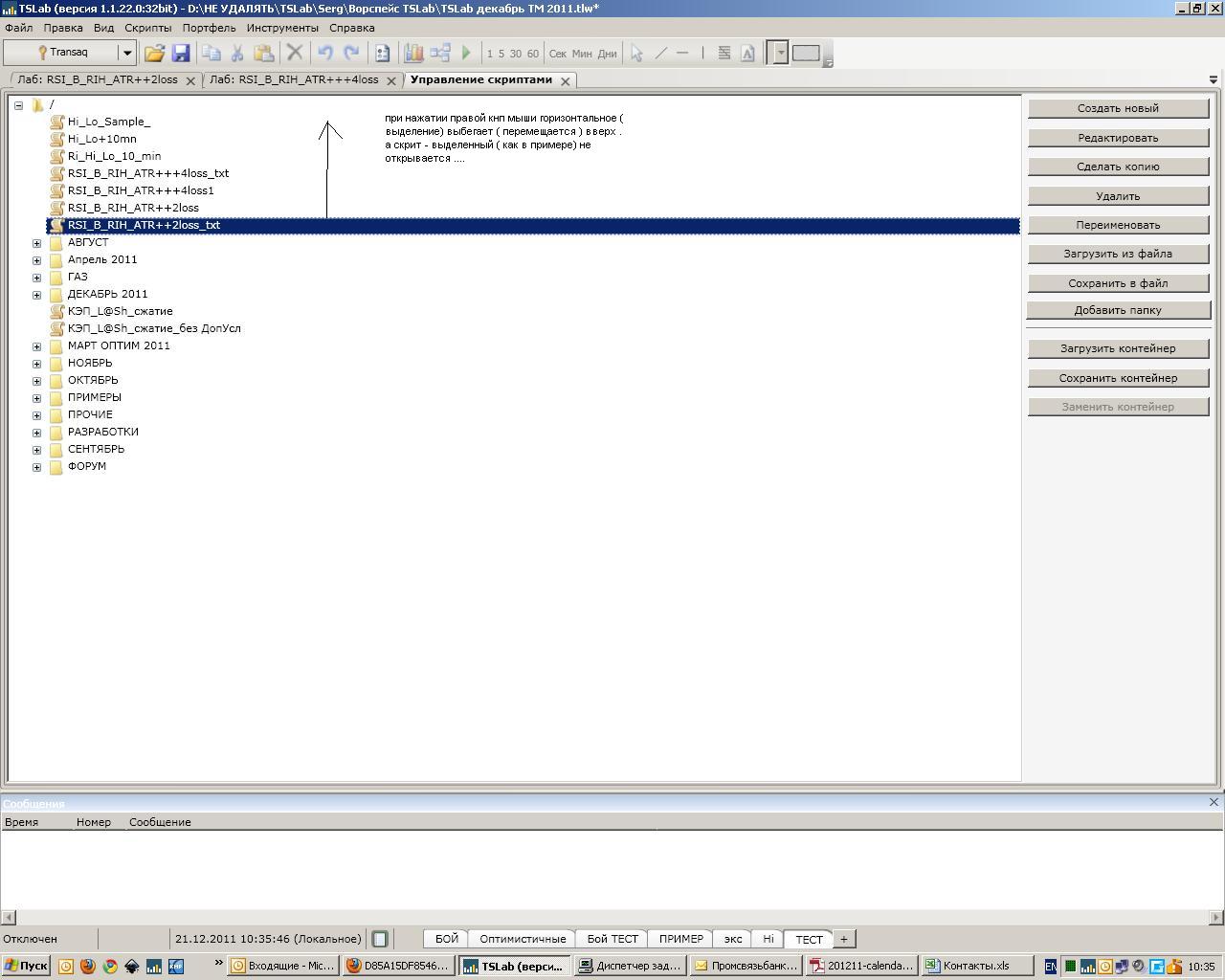 - при загрузке скрипта из "Управления скриптами" - "загрузить из файла" при выделении и посл нажатии правой кнп мыши, выделение выбегает вверх, а сам выделенный скрипт не открывается..)))