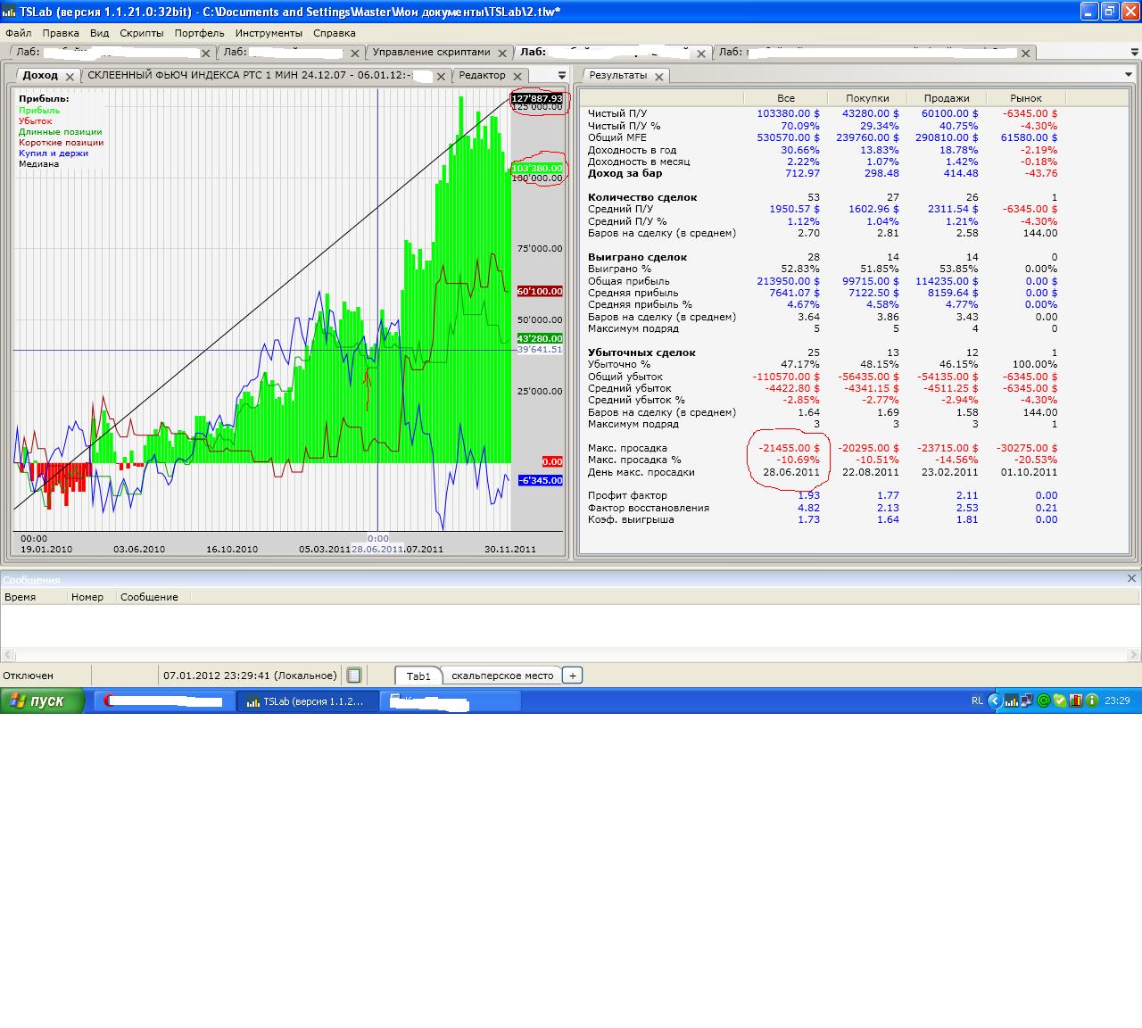 суть в следующем.на тесте максимальная просадка расчитана в размере 21455, число макс просадки 28.06.11.