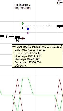 Не могу сообразить, помогите, либо я ошибся, либо баг. На выделенной чёрной свече появляется сигнал на открытие шорта (зелёная линия снизу) и размер стопа (красная, 189430). Позиция открывается на следующей белой свече (всё правильно). На открытии свечи мы ещё не знаем куда пойдёт цена, соответственно стоп ещё не снят. В редакторе установлен СтопЛуз на 189430 (по красной линии), и при росте цены он должен сработать и позиция закрыться на этой же свече.