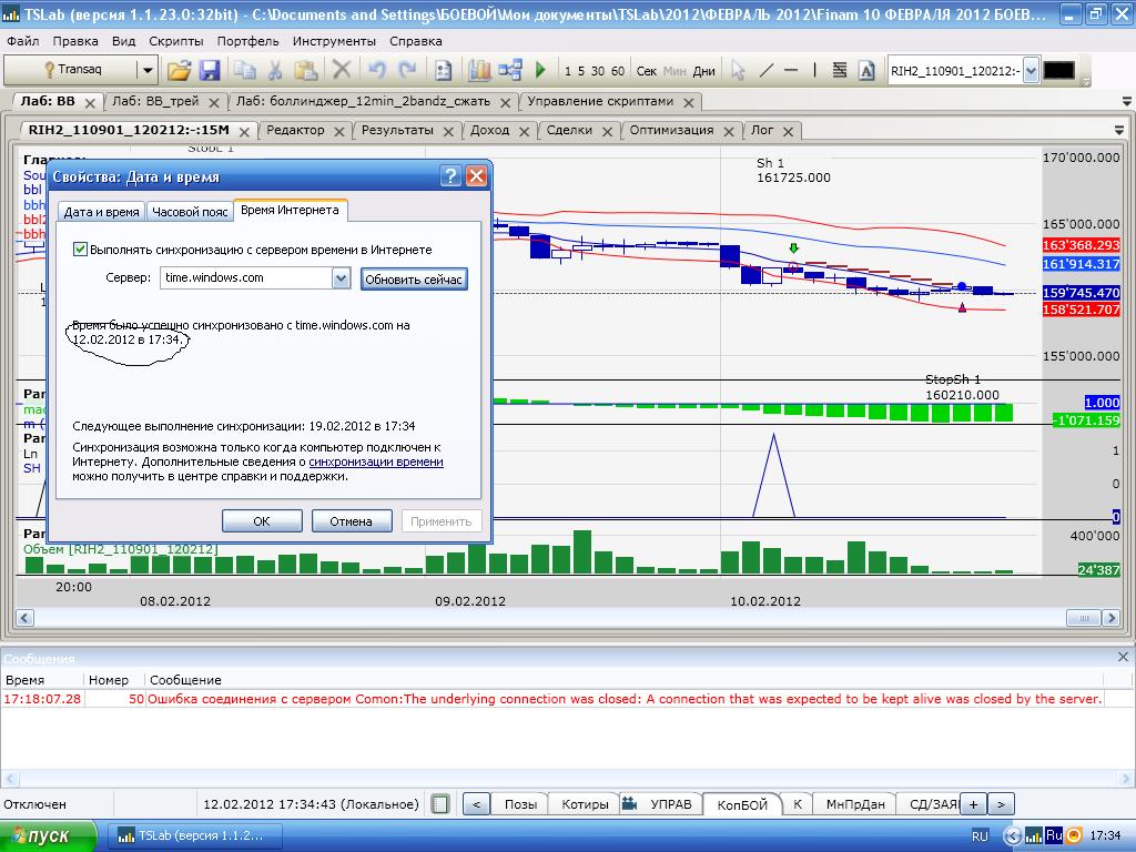 Понимаю, что нет синхронизации по времени с сервером брокера, решил все проверить.На мой взгляд - все в норме, часовой пояс Моска (+ 4 ) и синхронизация выполнена успешно и отражает правильное текущее время.....у нас время московское.