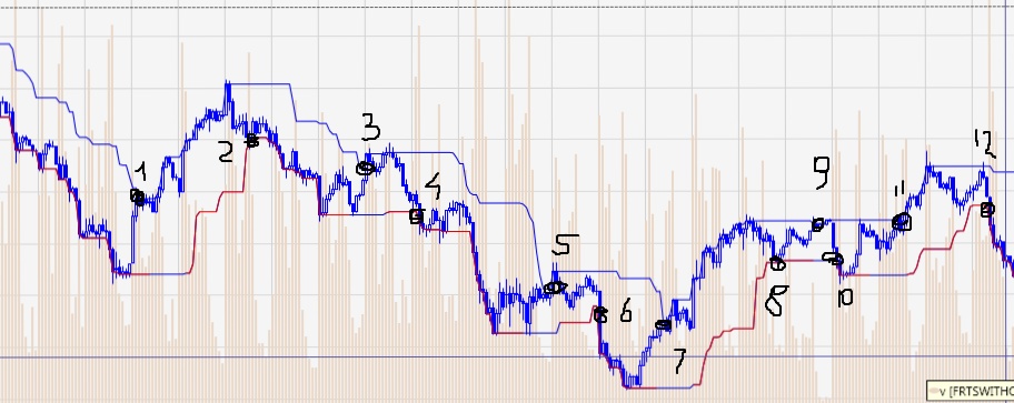 Как последовательно сохранить точки касания 1, 2 ,3 ... двух индикаторов допустим как на примере максза и минза . Какое условие нужно задать к обн знач.? В конечном итоге должна быть линия соединяющая эти точки.