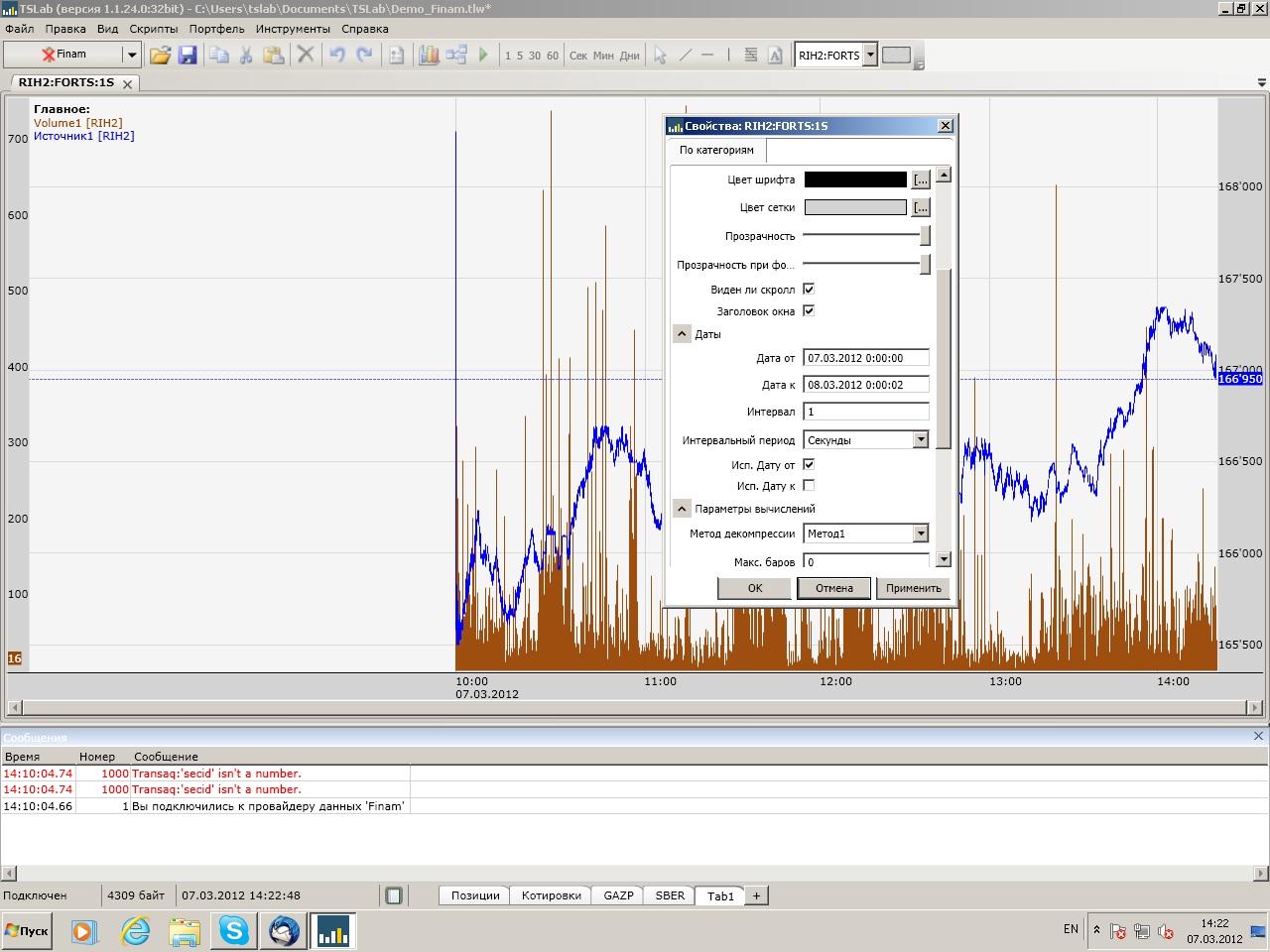 2. Это демо, в нем не рисуются секундние графики на ФОРТС
