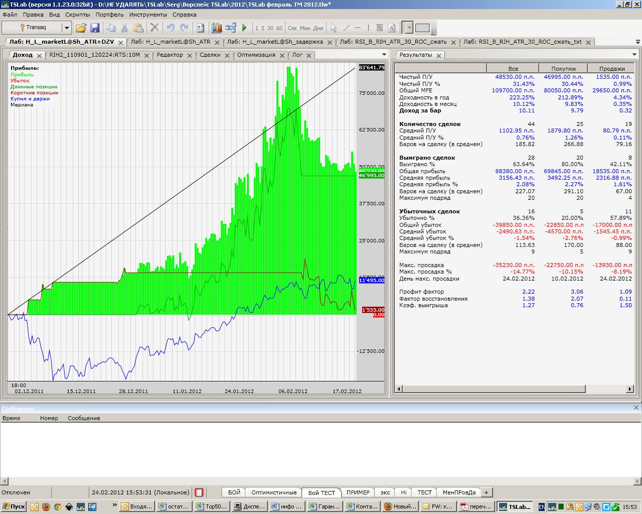 2. В трансляции открыта одна ! L50 позиция, потому что я своими шаловливыми ручками в конце прошлого и в начале этого года "помог" скрипту залосить больше положенного, в чём честно признался http://www.tslab.ru/ubb/ubbthreads.php?ubb=showflat&Number=37848&page=5. пост " к вопросу о дисциплине", и сумма прибыли не дошла до 20 000 пунктов, необходимых для открытия "второго периода" (75).