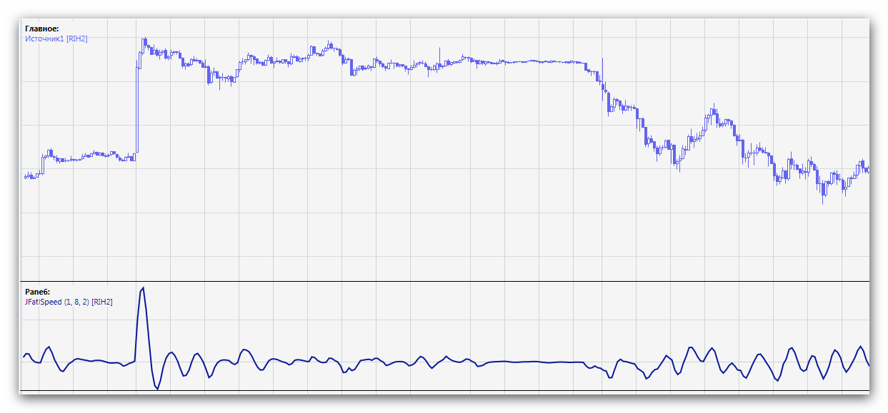 "Индикатор JFatlSpeed представляет собой сглаженный Momentum от индикатора быстрых трендов JFatl. Он позволяет обнаружить возникающие тренды."