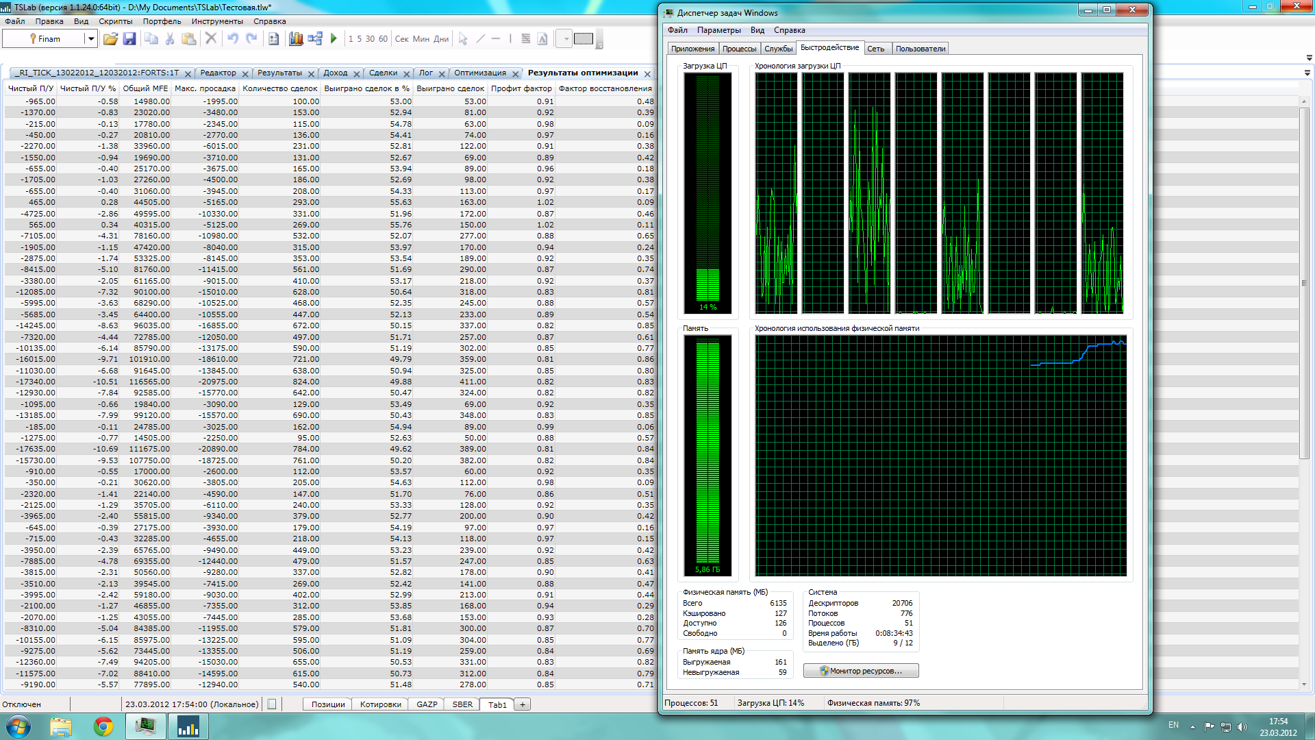 Выбрав другой текстовый источник (1-минутный) для того же периода - получаю полностью противоположный результат, сделки другие и расхождение в кол-ве баров в логе. Здесь получается та же самая 1 минута, но все совсем по другому.