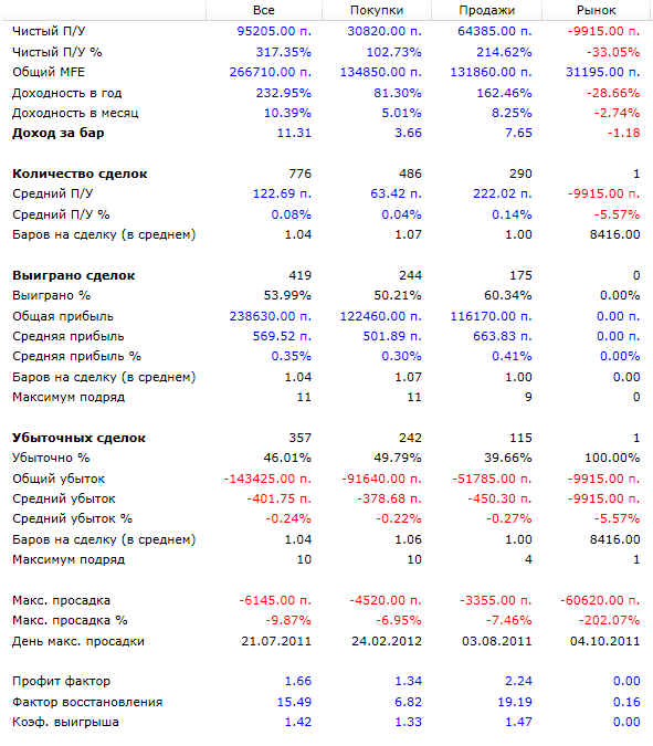 По результатам видно, что получился неплохой шортовый скрипт. Уберите лонг, поработайте над горизонтальными участками эквити, и... в бой одним конем!