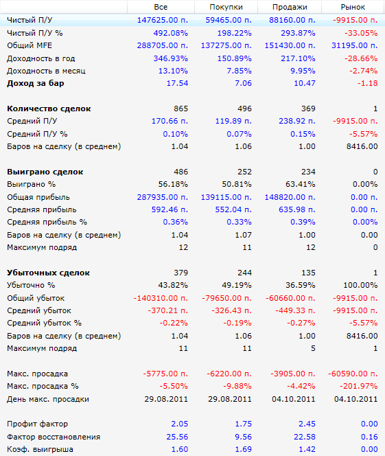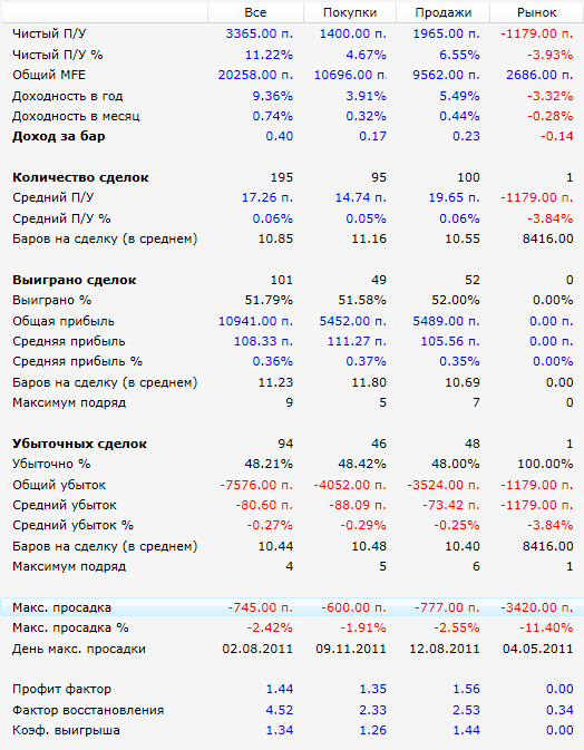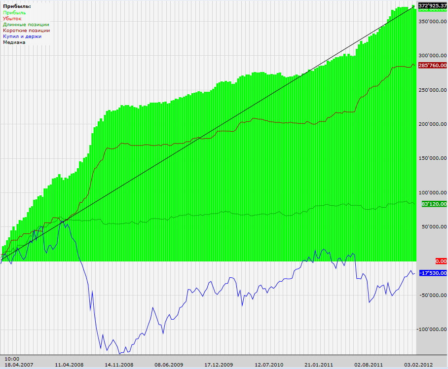 asilver, мог бы ты выложить результаты и график дохода начиная с 2011 года? Интересно просто прикинуть по кол-ву сделок и вообще по показателям, так сказать, ближе к делу. Я лично не доверяю тестам на 2007-2088 годе - слишком давно это было, да и супер обвал в кризис... Может ошибаюсь, конечно.