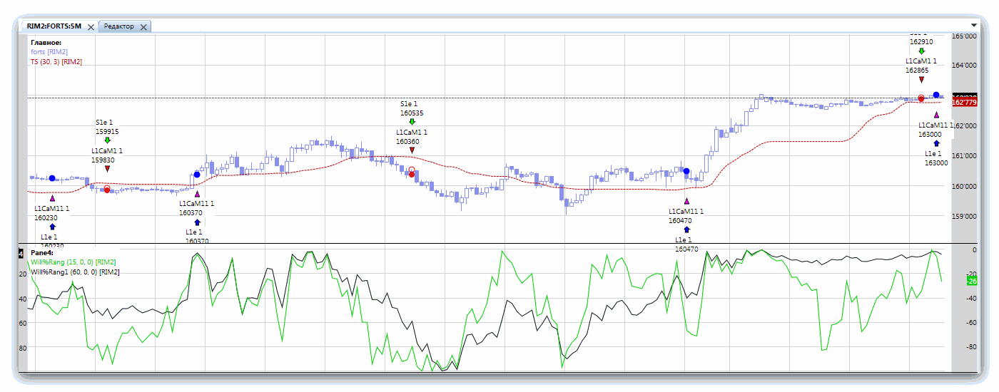 в приложении для примера - графики двух WPR с нарастающим пре-сглаживанием (есть такая примитивная система торговли - по быстрому и медленному WPR [wprfast-wprslow])