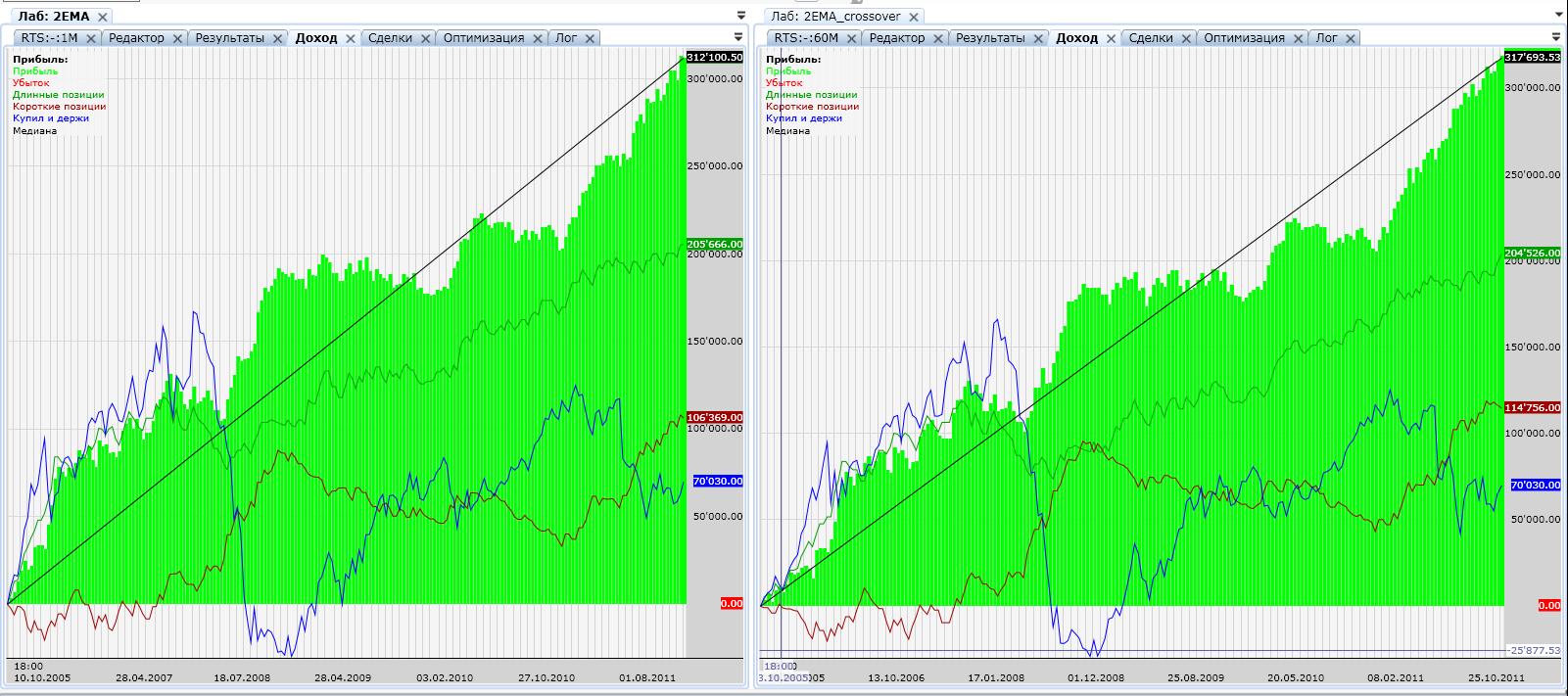 Разница возникает из-за выставления стопа и профита, и соответственно чем меньше стоп и профит, и чем меньше пересчет, тем эта разница выше. Собственно скрипты и должны быть разные. Стоп/профит выставляются на меньшем пересчете, а соответственно и срабатывания чаще.