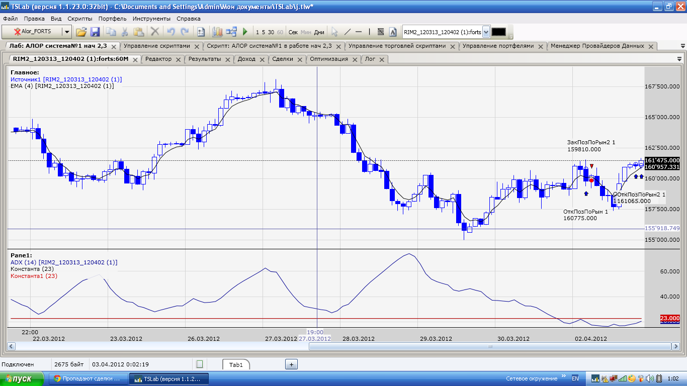 Имею счет реальный, но пока пустой. Запустил скрипт, сегодня утром прошла сделка в 11.00 и добавка в 12.00 сообщение нехватка по лимитам, но на графике стрелочки были. Потом они исчезли, нормально ли это. На копии данного скрипта подкачал историю, прогнал. Показывает только одну сделку. А в реале при наличии средств их было бы две. Я в растерянности HELP!