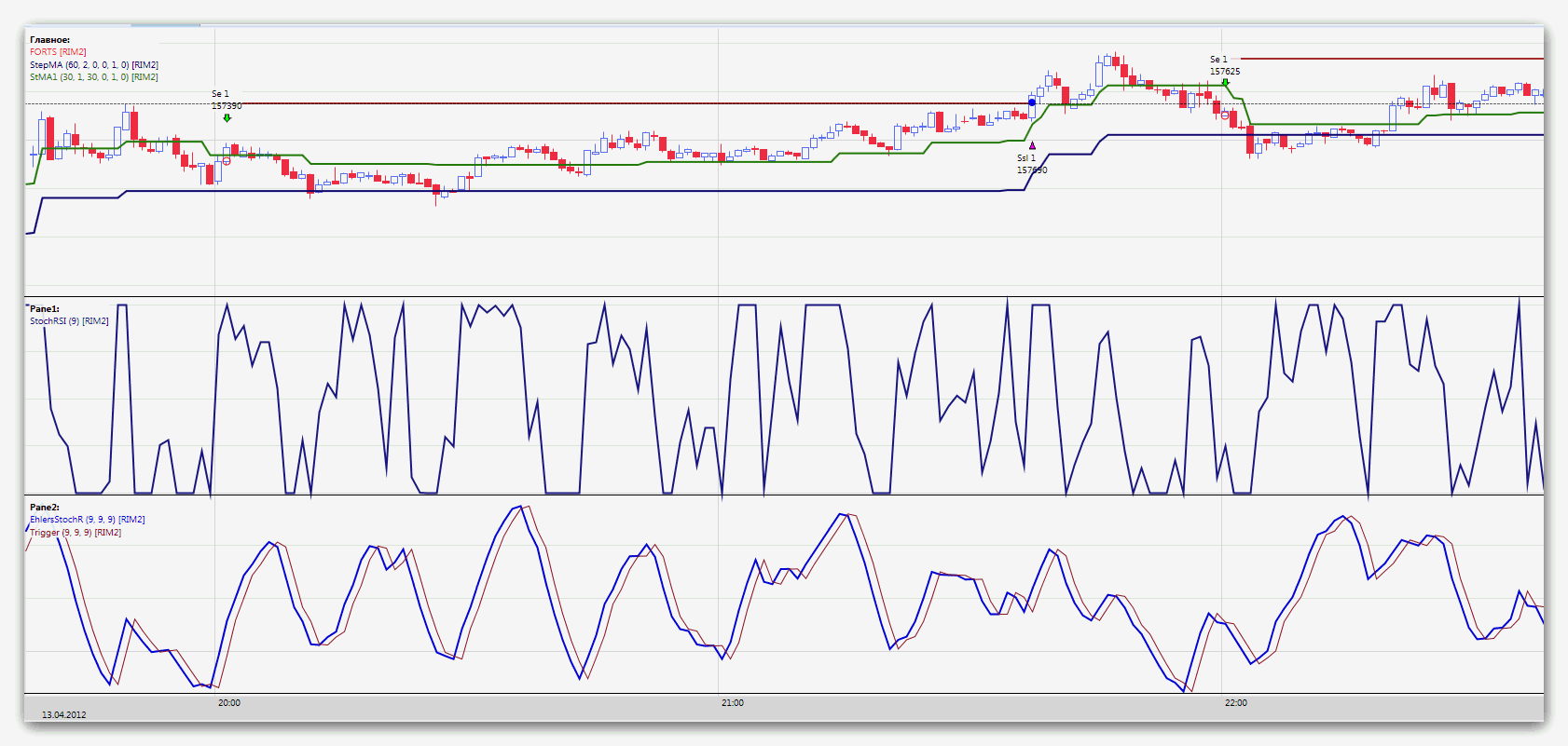 за счёт выбора периода стохастика и усреднения LWMA отличается в лучшую сторону от StochRSI из стандартной поставки TSLab