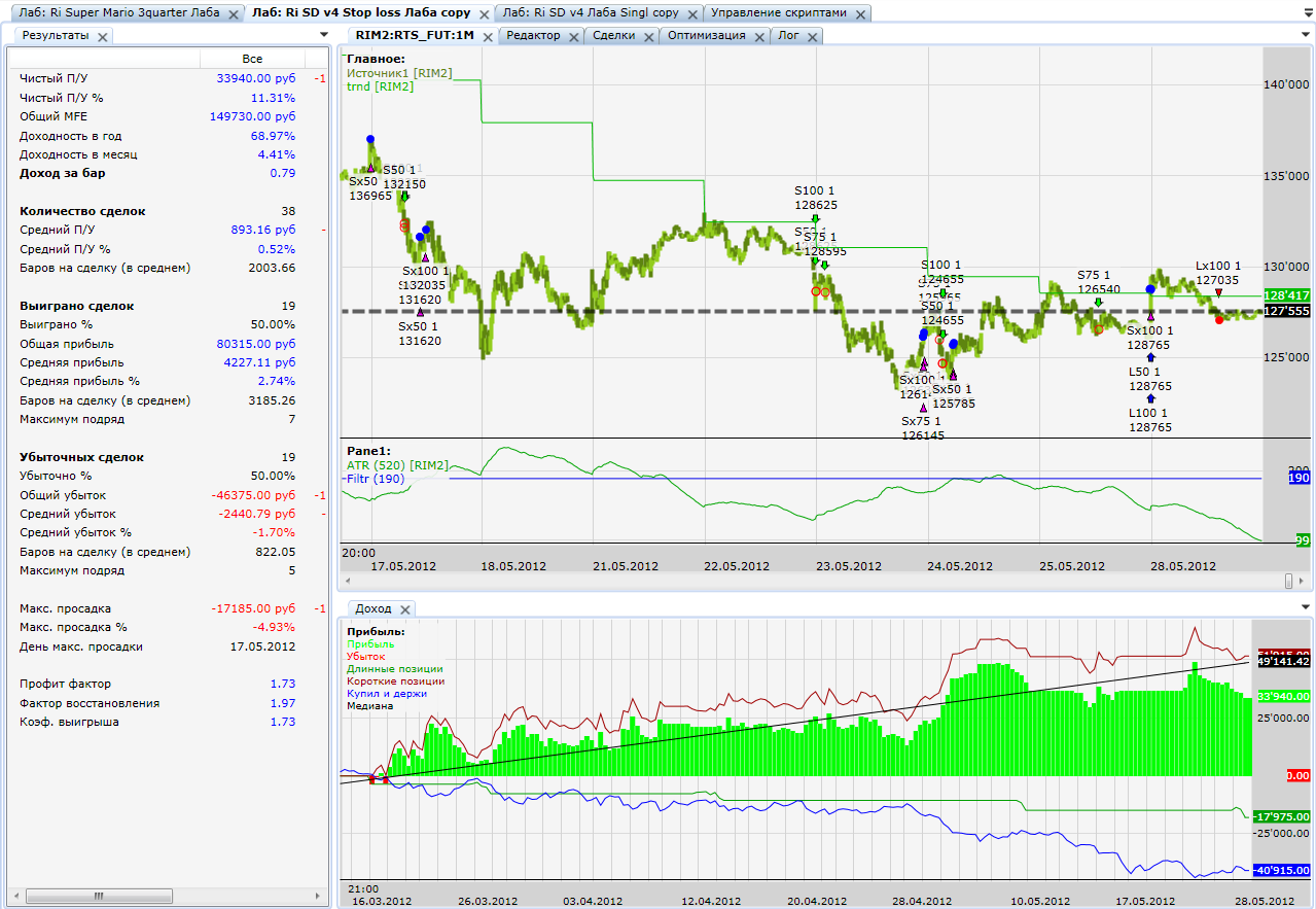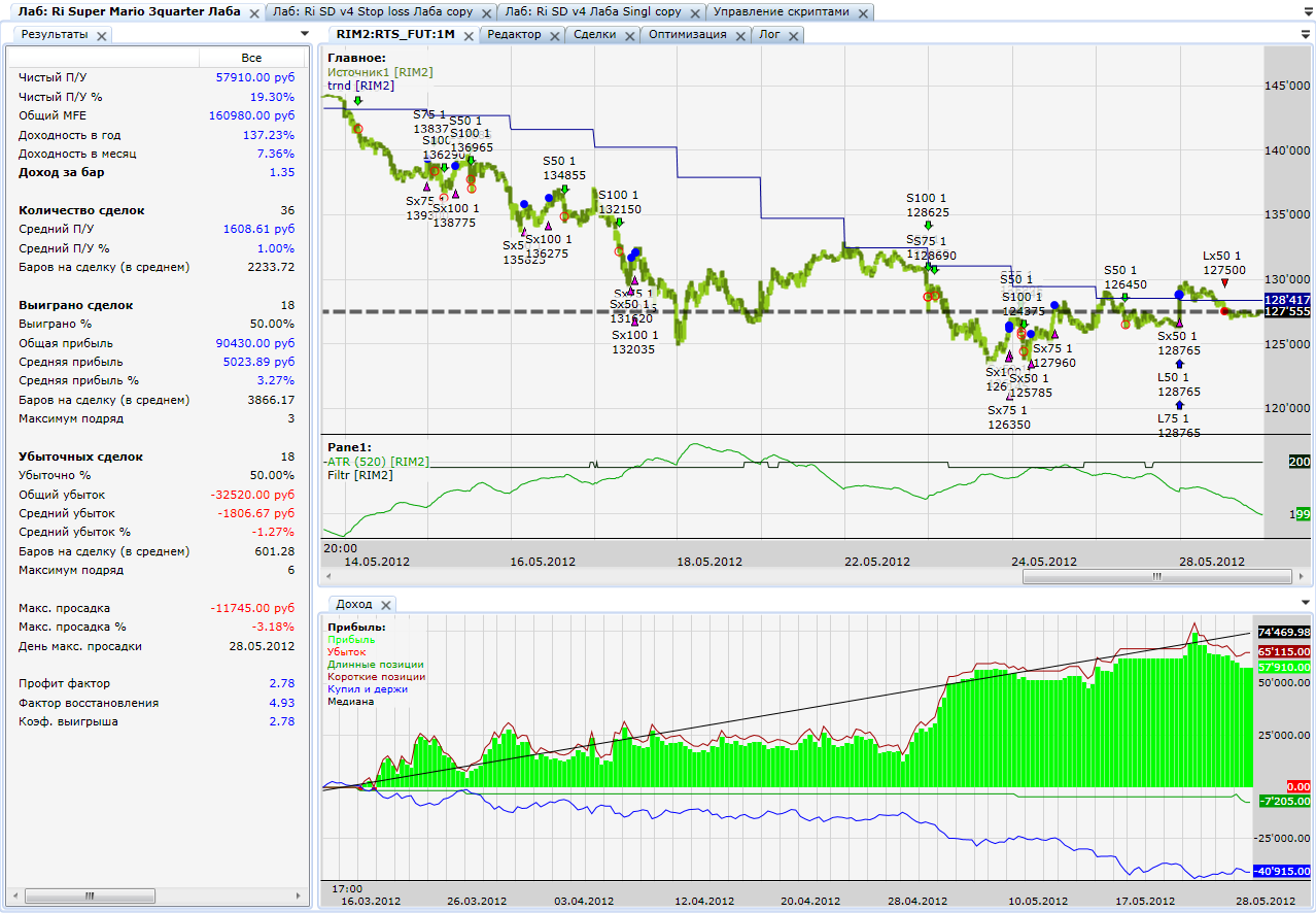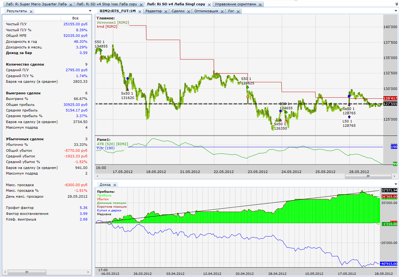Запилил рынок, непростой период. Добавил в трендовые скрипты ограничитель для торговли строго по тренду (если он есть конечно). При пиле на фоне направленного движения эффективно вышло. от пилы на фоне флэта не спасает. На следующий фьючерс из трендовых оставляю только эти три скрипта. С ограничением по направлению сделок.