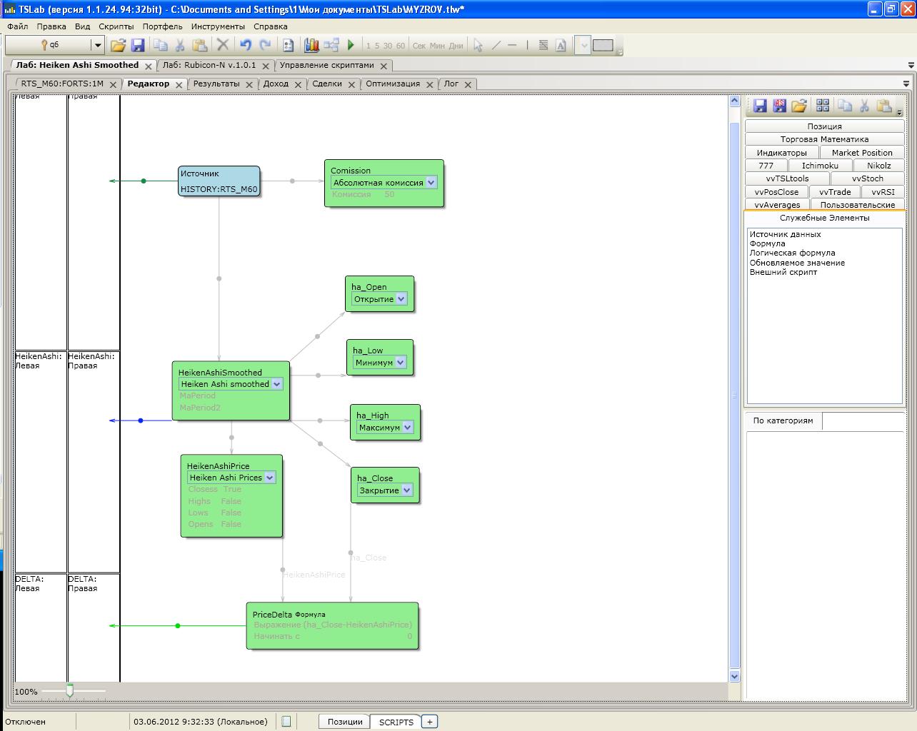 Проверил работу блока "Heiken Ashi Price", подключив его к блоку "Heiken Ashi Smoothed". Из четырех цен, которые возвращает блок "Heiken Ashi Price" не совпадает ни одна. Формально это можно записать так:
