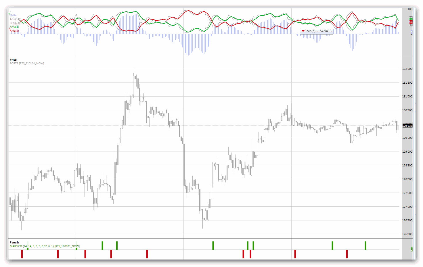 0-RSI, 1-RSI MA, 2-Rev RSI, 3-MA Rev RSI, 4-Delta, 5-sMAD, 6-сигналы (пересечения, на скрине - внизу)