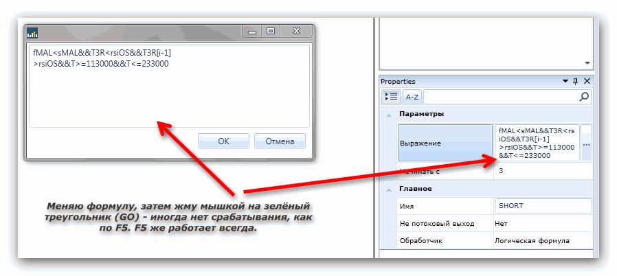 заметил следующее - при изменении формулы (в окне формулы либо в подокне "Выражение") иногда скрипт не делает пересчёт, как по F5.